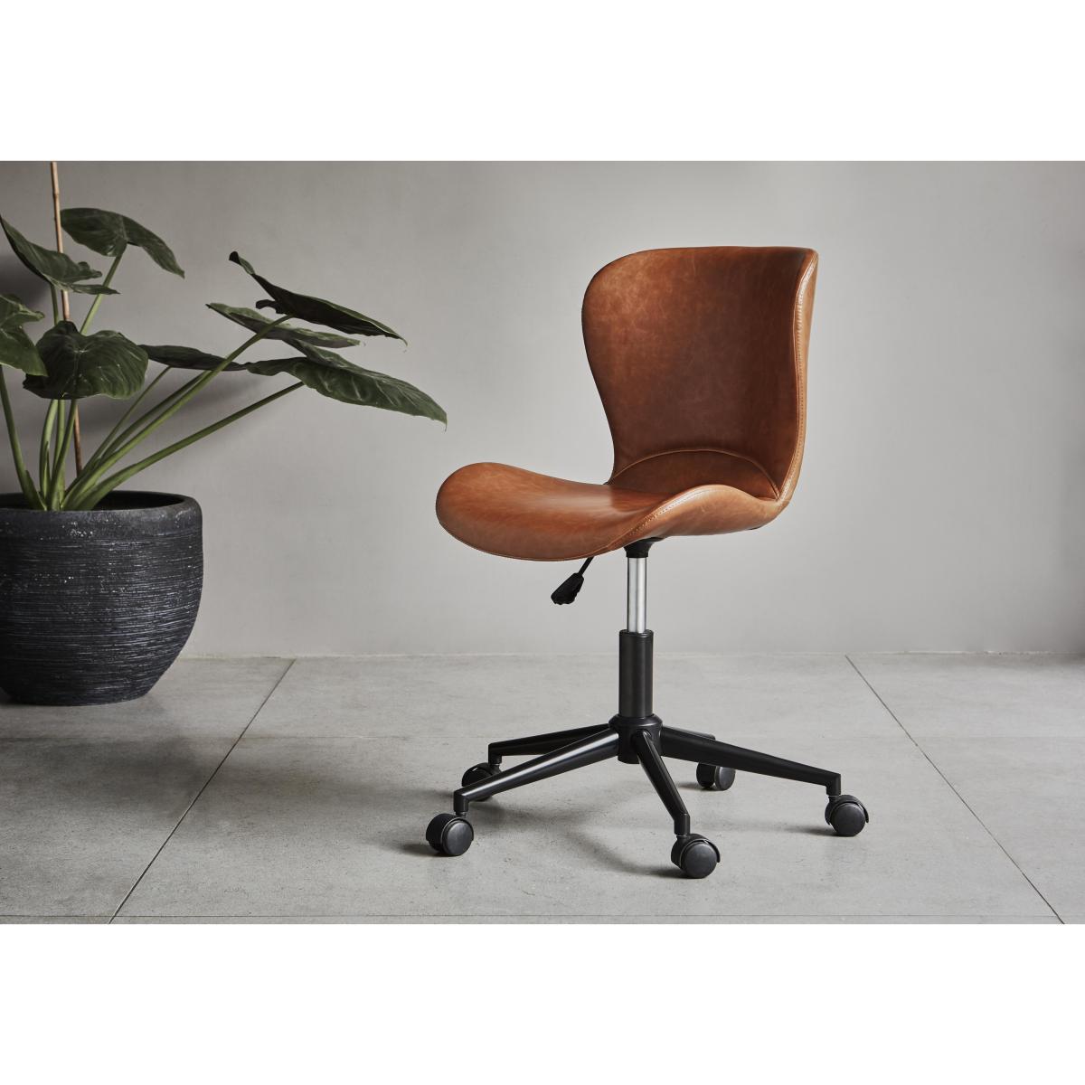 Treat your home office to sleek and sophisticated modern style with the Holden swivel office chair. With glossy, faux leather upholstery in brown or charcoal. Height adjustable. This is a self-assembly item. Why you'll love it. Sleek, sophisticated modern office chair. Faux leather upholstery, in glossy brown or charcoal. Softly cushioned, with a contoured seat. Height adjustable with easy gas-lift mechanism. Black metal star shaped swivel base. On castors, so it's easy to move around. Great value price. What you’ll need to know. Iron and plywood chair frame and legs. Strong metal base on five castors. Faux leather upholstery. Foam cushioning. Faux leather is easy to care for. Simply wipe clean with a damp cloth. Please read our. Upholstery care guide. For more advice. Requires minimal self-assembly.
