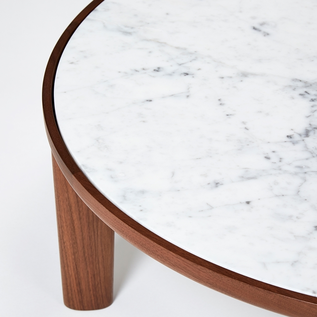 Designed by Gabriel Tan and exclusively available at The Conran Shop, the Hole Coffee Table is crafted from solid walnut wood with a uniquely veined Carrara marble surface for a distinctive finish. Crafted from solid fine-grained marble, the table top showcases the luxurious material's one-of-a-kind veining. With studios in Singapore and New York, Gabriel Tan works across the borders of craft, culture and technology. Striving to subvert archetypes and reinterpret luxury pieces, the Hole Side and Coffee Tables beautifully demonstrate Tan's aptitude for functional, creative design.