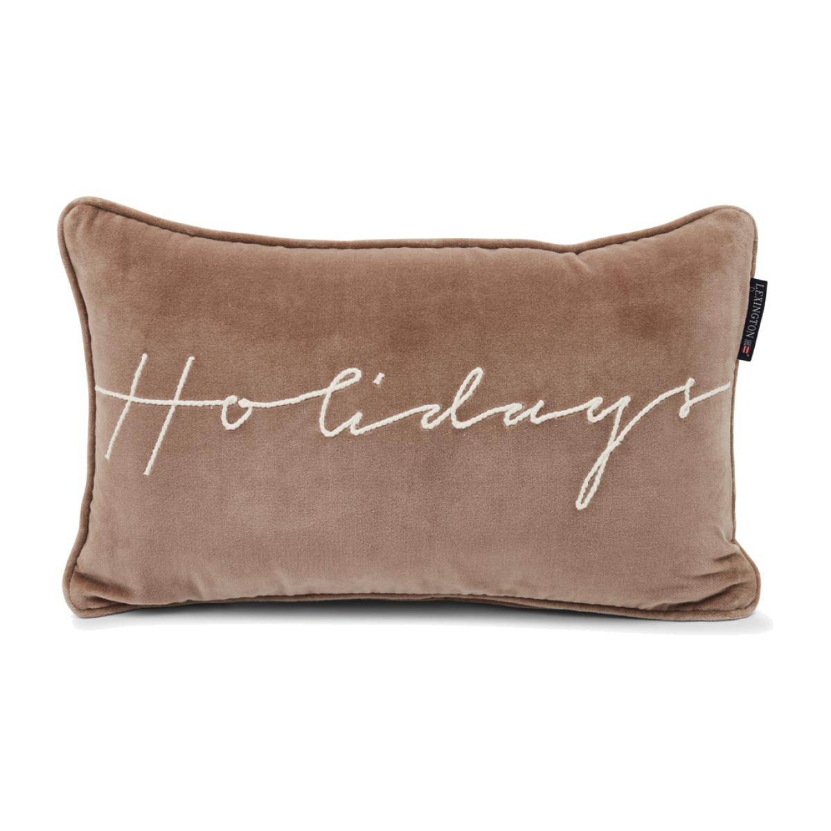 Holidays Cotton Velvet pillow 30x50 cm from Swedish Lexington is made of lovely velvet cotton with an inner pillow made of recycled polyester filling. The pillow says "Holidays" on it and around the edges is a matching passpoal. Holidays Cotton Velvet pillow is a soft and cosy decorative detail on a bed or the sofa.