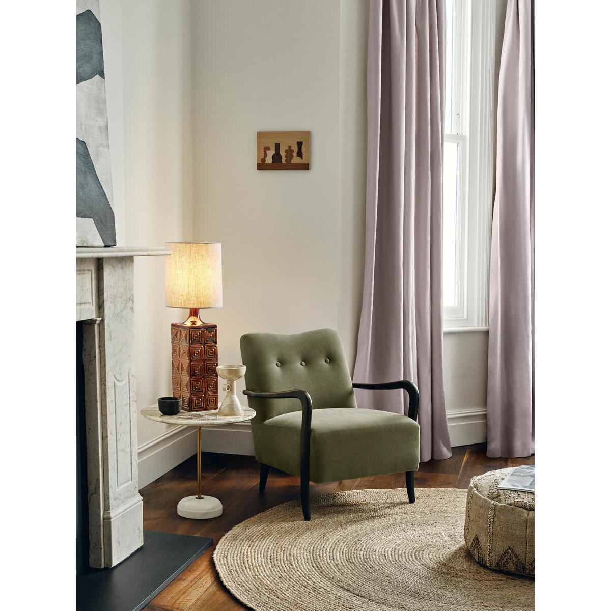 I love this armchair for its timeless silhouette and inviting velvet finish, which instantly elevates any room. Its neutral fern green shade is versatile enough to work well in both classic and contemporary interiors, adding a touch of colour without overpowering the space. I’d suggest pairing it with other rich textures and muted tones for a sophisticated look or using it as a statement piece in a neutral scheme. Practical styling tips include placing it alongside a slim side table and soft lighting to create a cosy corner, or using it to complement an existing seating arrangement for added visual interest. Its blend of comfort and style makes it a great option for living rooms, bedrooms, or even a study.