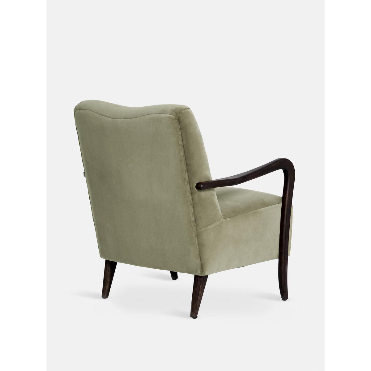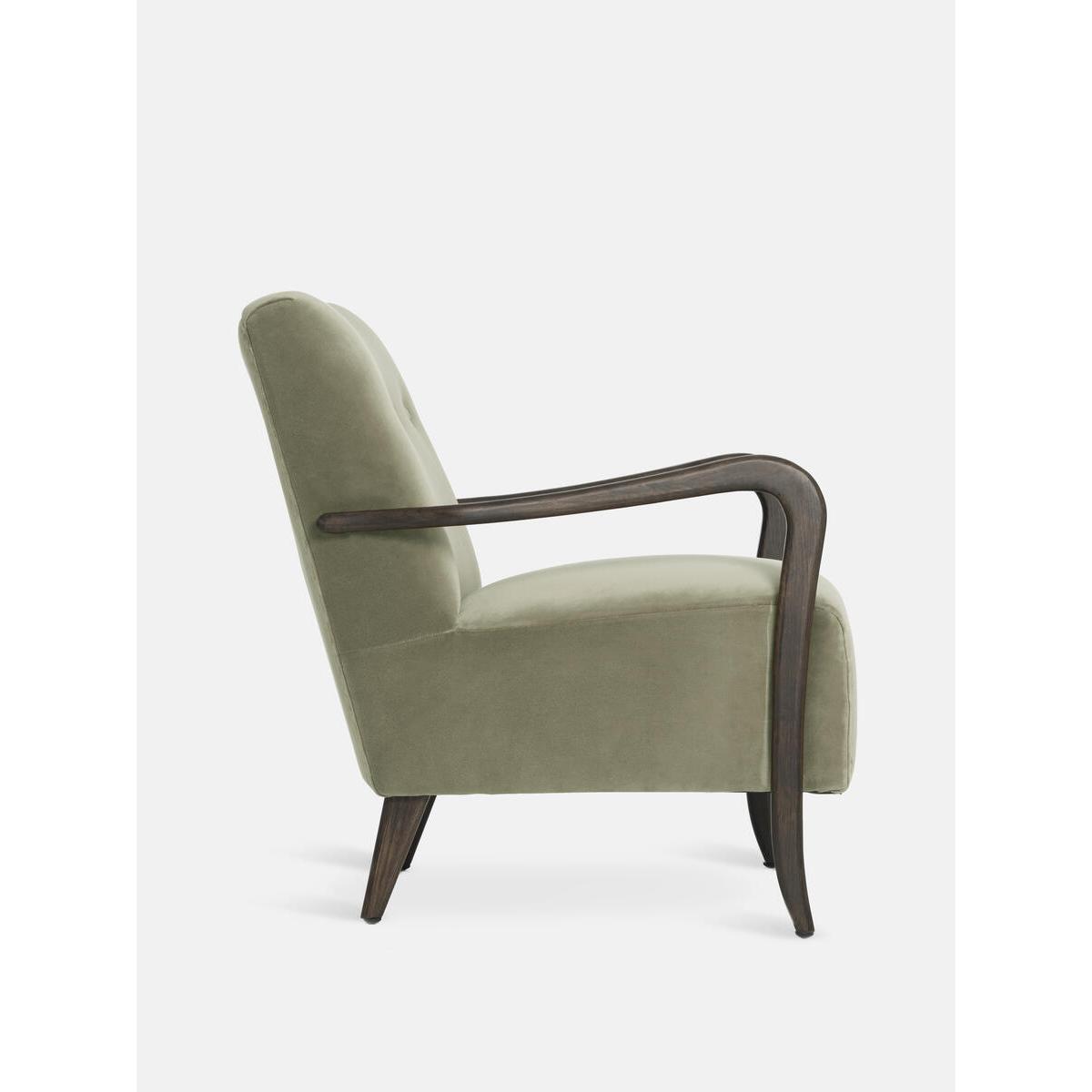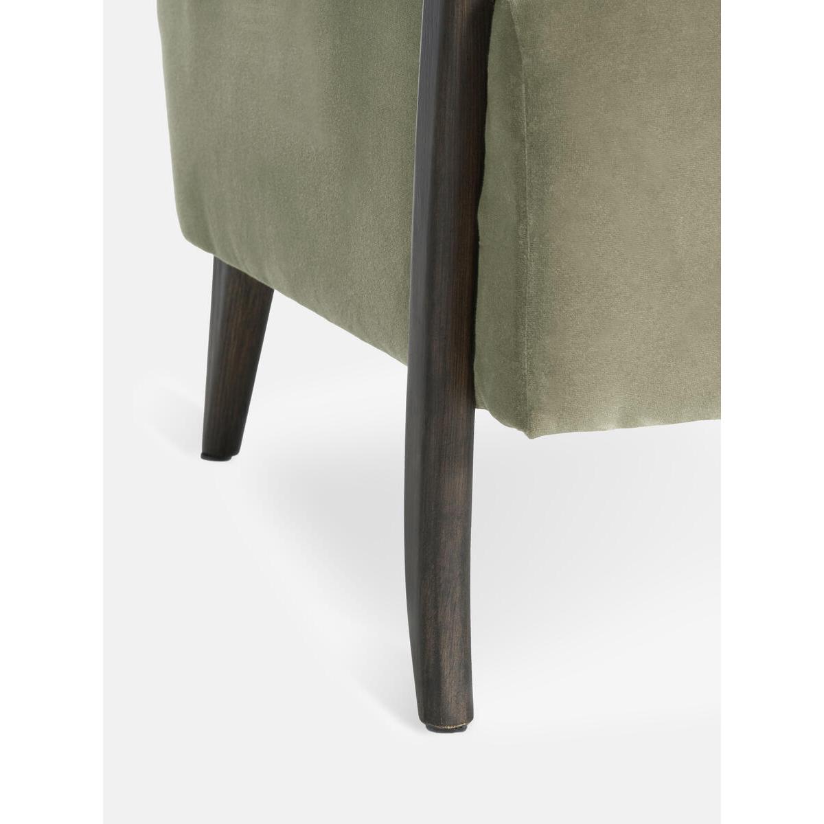 Inspired by the armchairs found in our lounge spaces at High Road House, our Holland chair in sage cotton velvet has a deep-sitsilhouette and large foam cushions. The clean lines arecomplemented by a button-back detail and slim ash-wood arms. Cotton velvet upholstery. Button-back detailing. Ash-wood arms. Inspired by vintage chairs at High Road House.