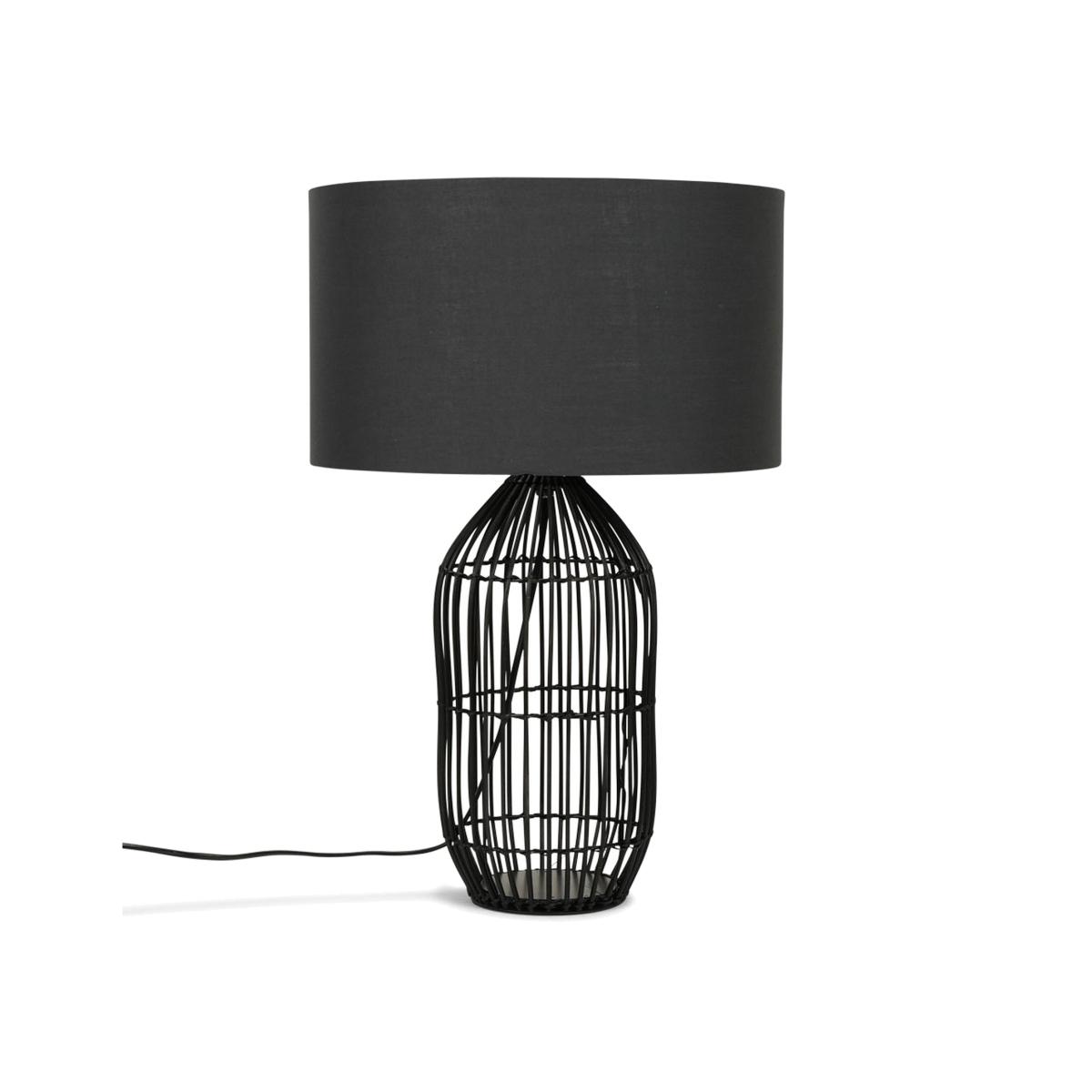 Hollins Large Rattan Cylinder Table Lamp - Matte Black / 1.8m / Grey Shade