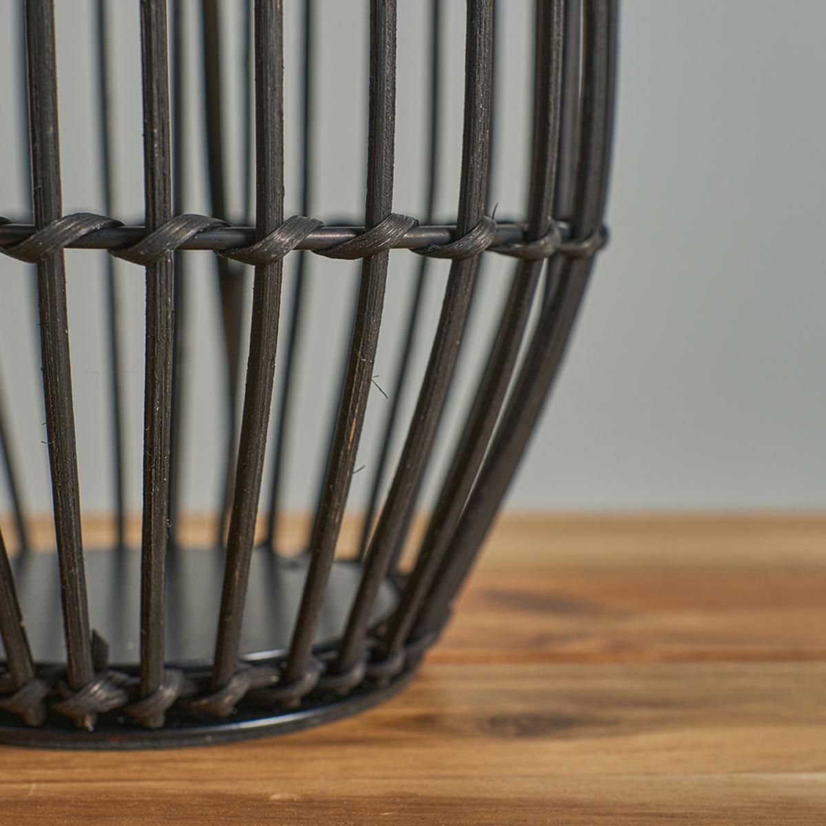 Bring some global style to your home with the small matt black Hollins table lamp with white Reni shade. Choose a natural or matt black finish for this rattan table lamp, that features delicately woven natural rope that forms the base of this exotic looking table lamp. The Hollins is perfectly paired with a range of drum shades to compliment your colour scheme. The carefully woven base and warm light of the Hollins table lamp brings instant texture and interest to your decor. Requires one 40W ESE27 bulb or LED equivalent