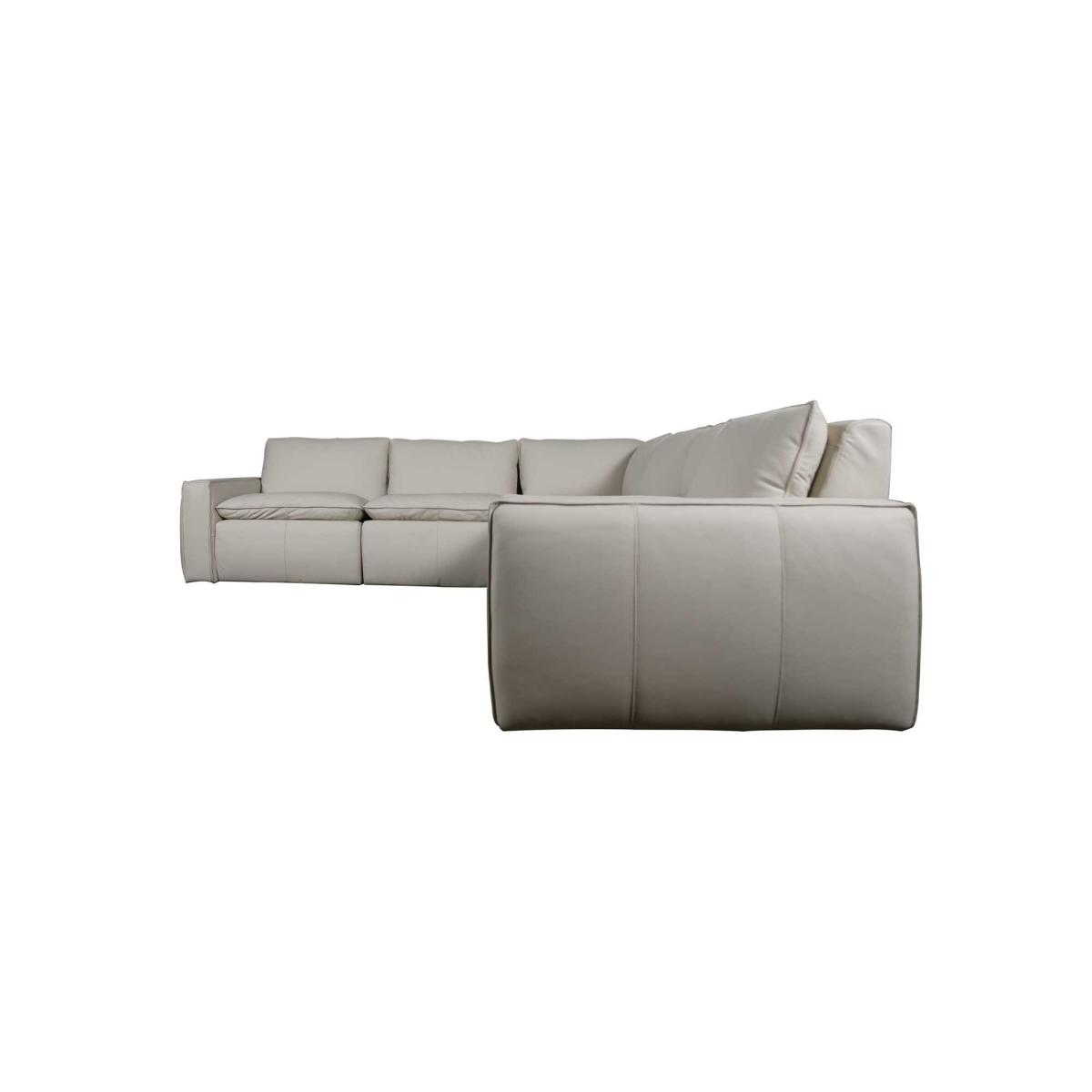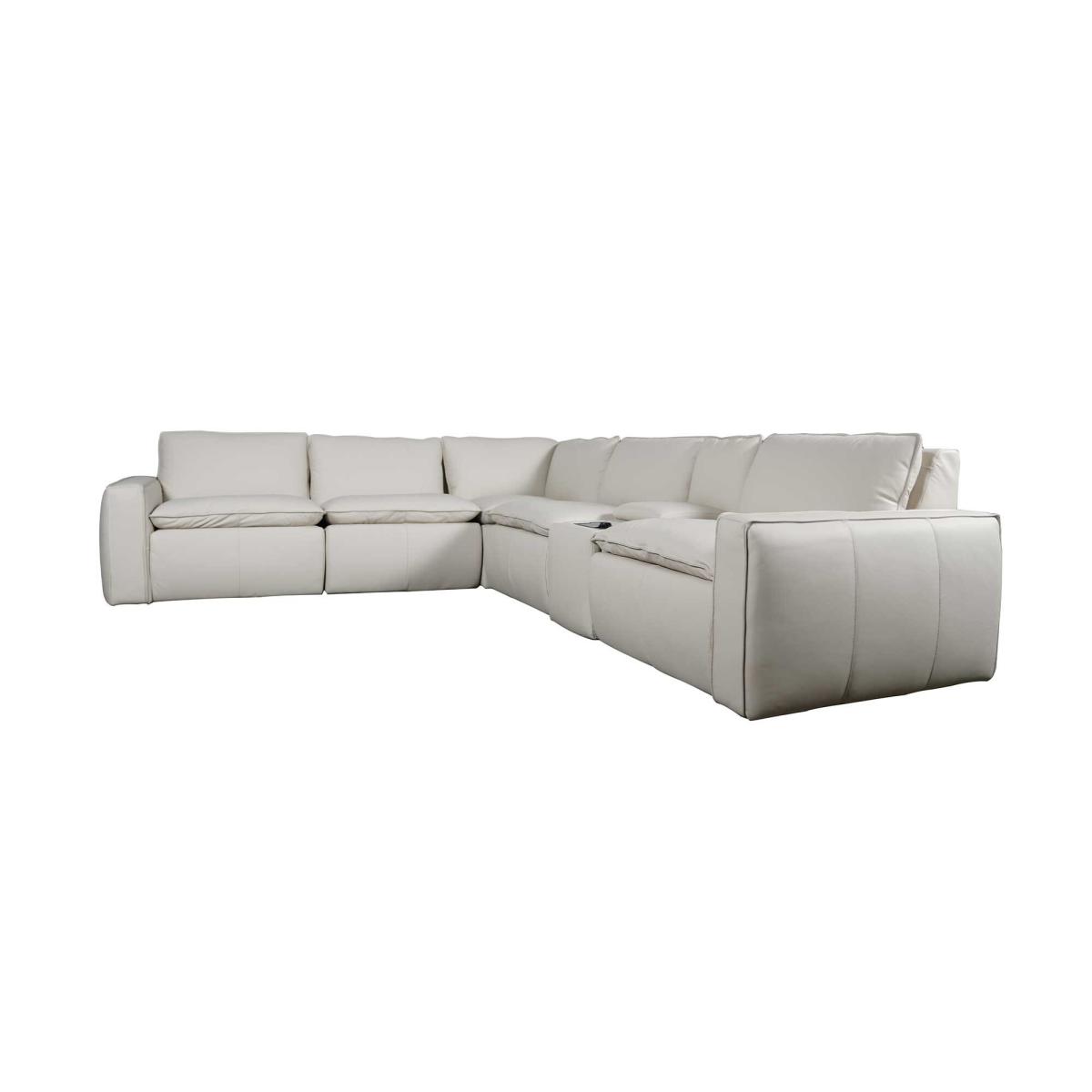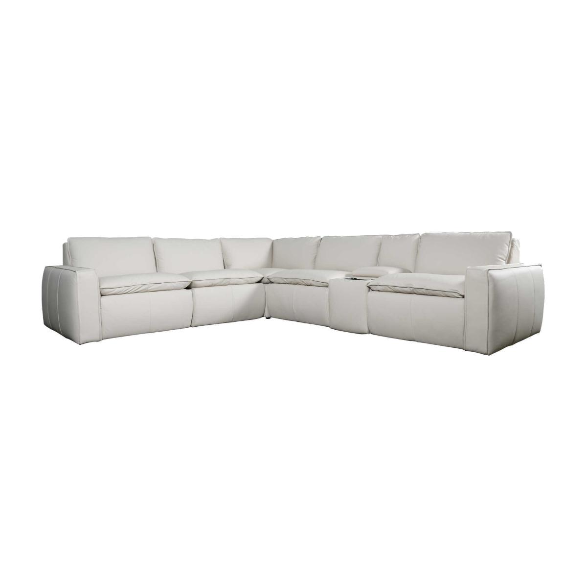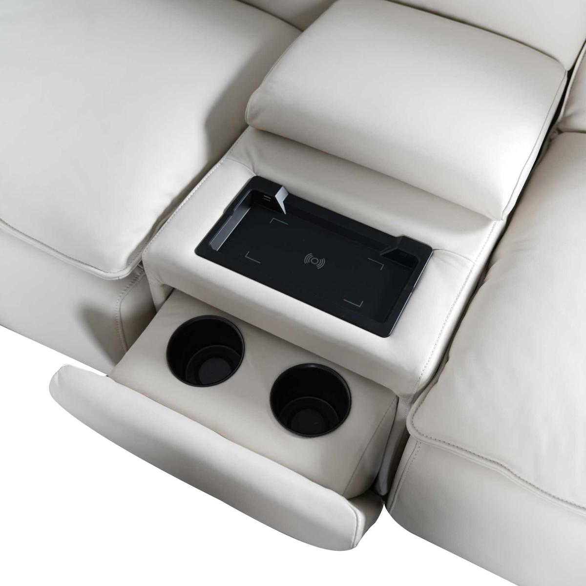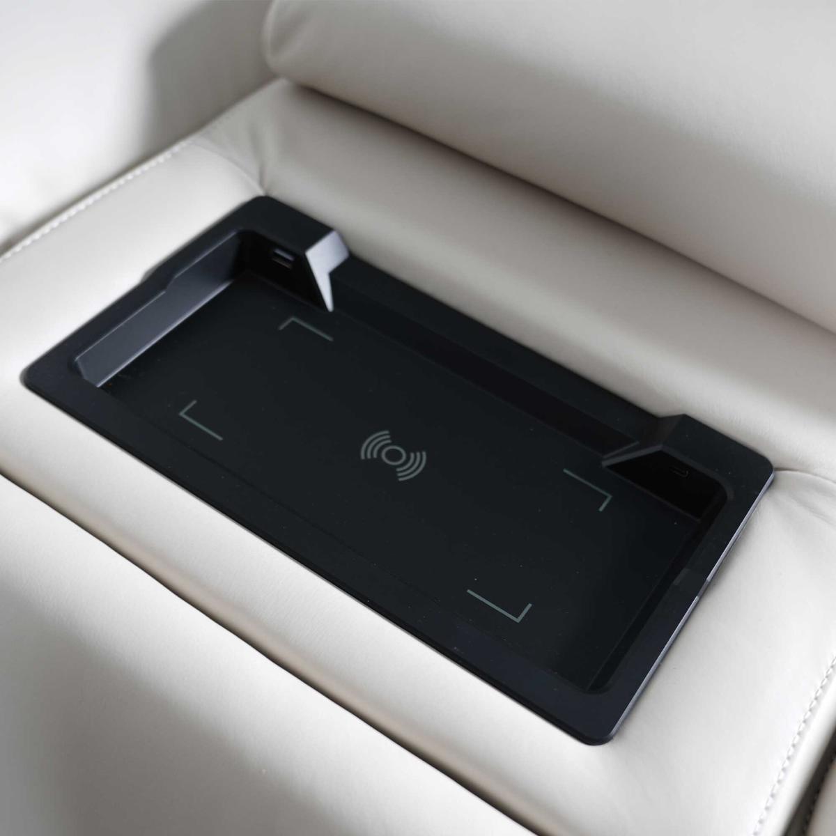 The Holloway Neutral Leather Modular Corner Sofa blends modern comfort with smart design, perfect for spacious living rooms with a clean, contemporary feel. Upholstered in high-quality full leather, it features soft feather-fibre cushions, gently padded arms, and refined piping details for a tailored finish. The built-in console offers cup holders, hidden storage, and a wireless charger which is ideal for modern lifestyles. A stylish, supportive, and luxurious choice for relaxed, connected living.