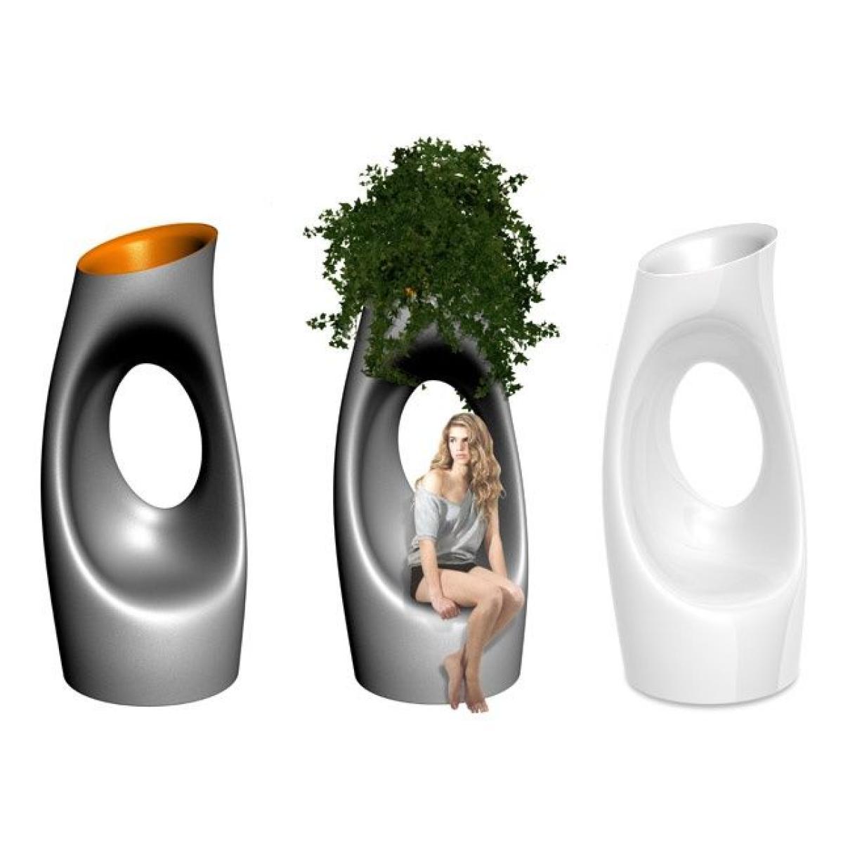 The Italian company Serralunga presents the Philippe Starck's Holly All vase that is more than just a vase. The dimensions (Size: L 92 cm, W 89 cm, H 200 cm) allows you to use it for seating or using it as a sculpture. It made of Polythylene and steel. The hole that opens on the surface, gives lightness and fluidity to the whole object, interrupting the continuity of the vase and creating an object that can be interpreted from many points of view.