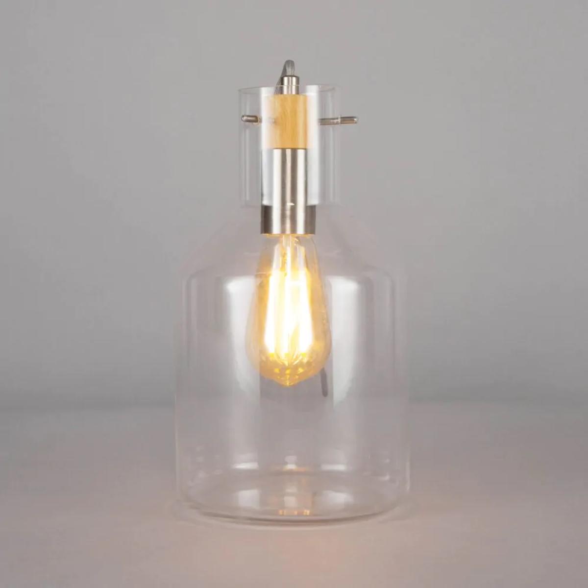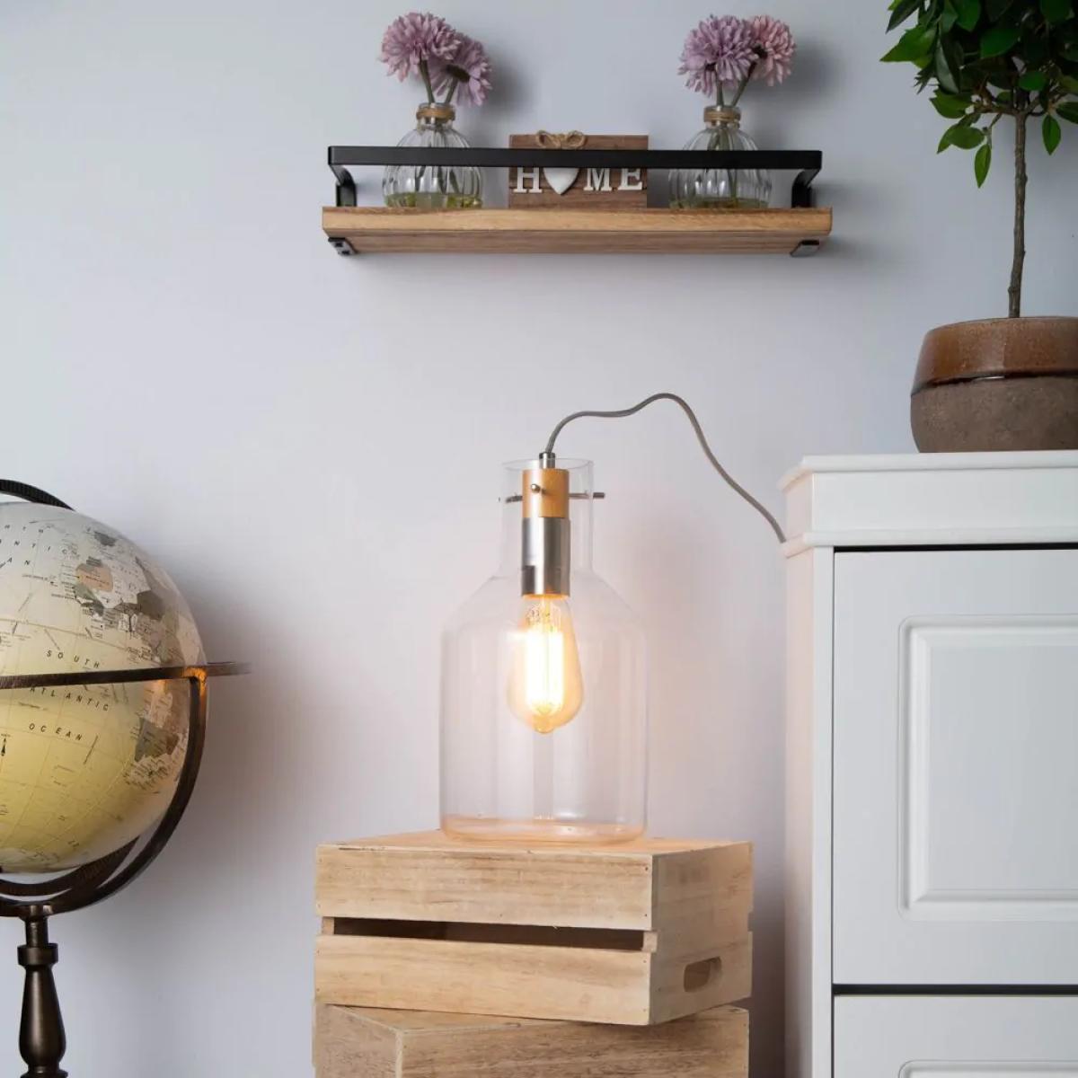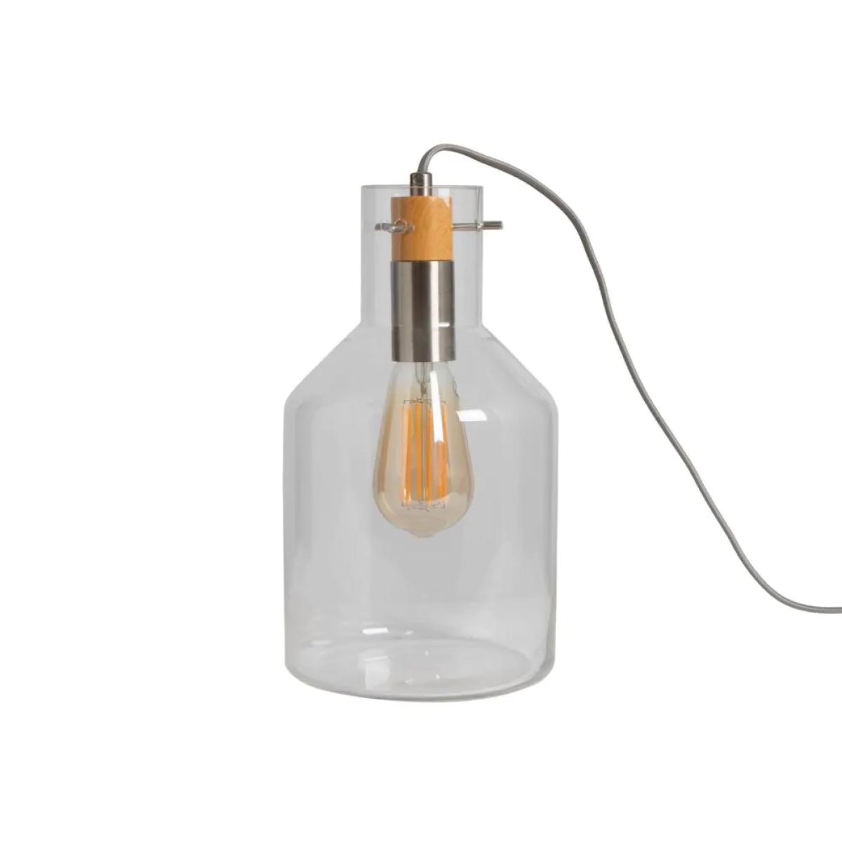 I love this clear glass lamp for its minimalist yet modern aesthetic, making it a versatile piece that can complement a variety of interiors. Its transparent design allows it to blend seamlessly whether in a contemporary, industrial, or Scandi-style space. The chrome detail adds a subtle touch of sophistication, ideal for pairing with other metallic accents. For practical styling, consider placing it alongside neutral-toned sideboards or desks to add subtle illumination without overwhelming the space. Its simple form also makes it a great bedside or task lamp, where its understated elegance can enhance the overall room vibe.