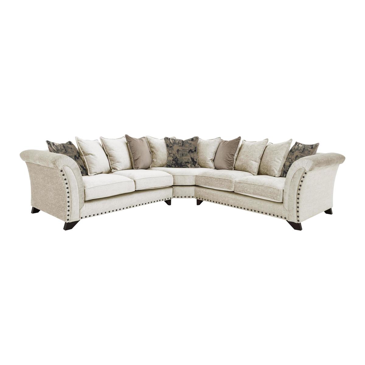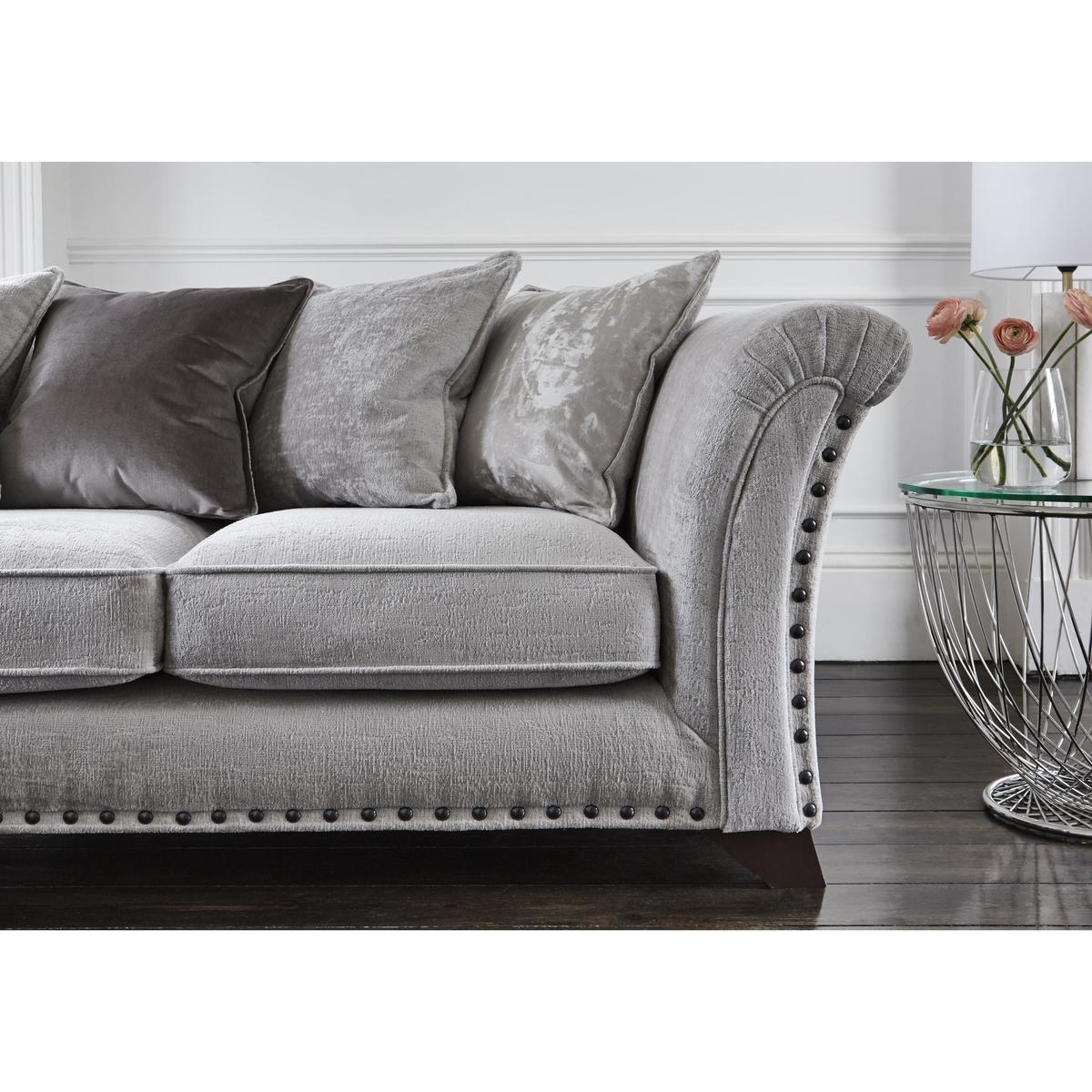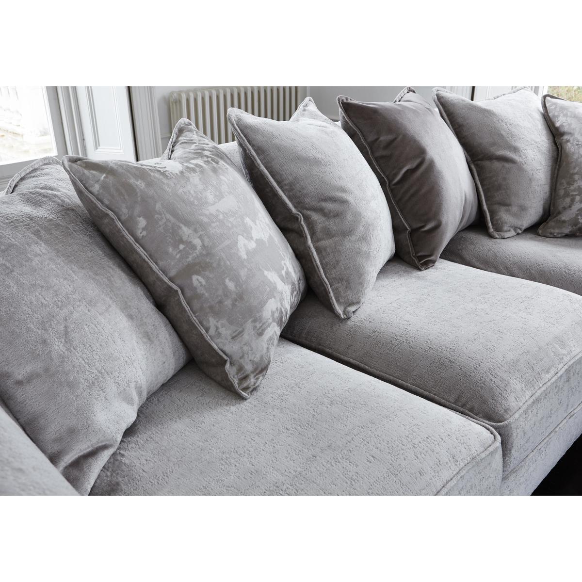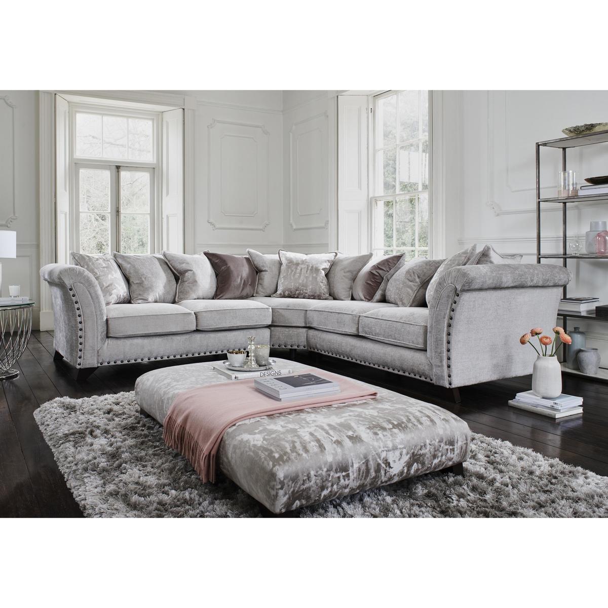Opulent comfort. Modular construction. Duck feather pillow backs. Soft, inviting and designed to reach a whole new level of comfort, this pillow back corner sofa is the largest item in the Holly range. Covered in luxurious fabric, with a choice of colours available, the cushions along the back are filled with duck feathers, while the seating itself uses an ingenious foam base and foam topper combination. Make the sofa your own by choosing dark or light wood for the feet, and even asking for a version without studs, if you prefer. Call us on 0800 804 8879 to talk through the options. The Holly range is extensive, and this piece can be paired easily with a matching footstool, or additional sofas and armchairs, depending on the room. Modular pieces are available, and additional scatter cushions can be ordered, should extra comfort be required. Made in the UK and upholstered by hand, the Holly collection is available now from Furniture Village. Top tip: Some fabrics can show wear on areas of more use or in direct sunlight. To keep your fabric upholstery looking fresh, plump, turn and rotate seat and back cushions regularly if possible.
