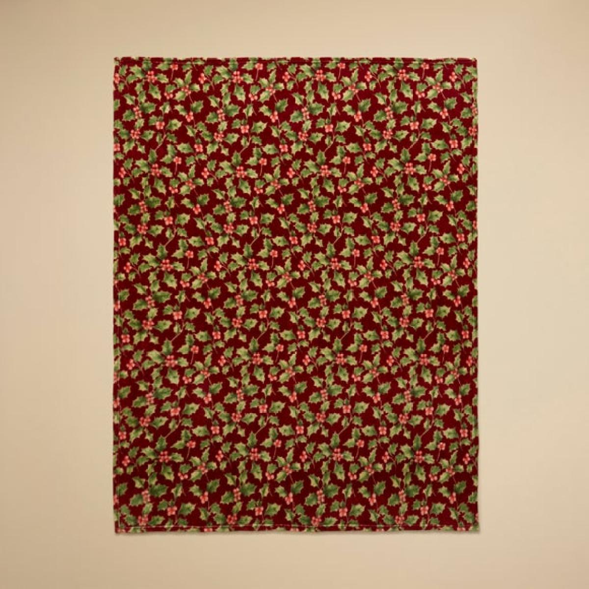 Holly Leaves Printed Fleece Throw Blanket