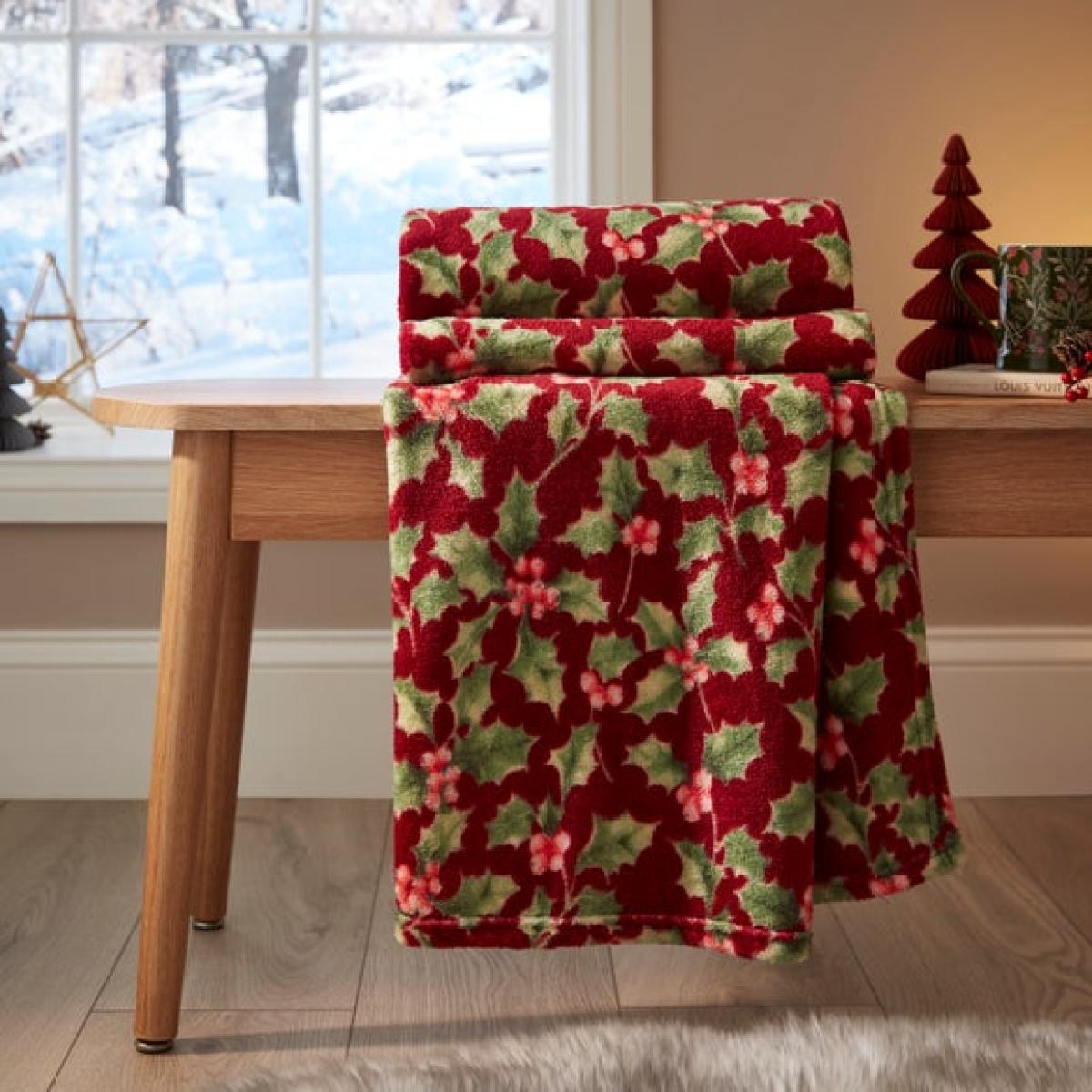 * Keeps you warm and cosy * Holly leaves festive print * Ideal for Christmas gifting or relaxing Get into the festive spirit with this fleece throw, finished with a holly leaves print that brings a classic Christmas feel. Soft and warm, it’s perfect for snuggling up on the sofa or adding a cosy layer to your bed. Whether you’re watching a festive film or just keeping the chill off, it’s made for comfort.