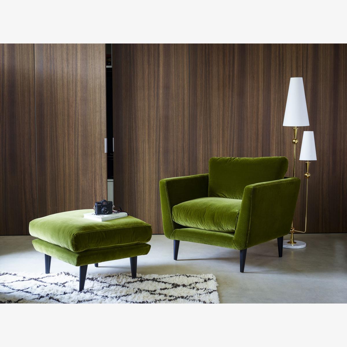 I love this little armchair for its versatility and the way it brings a touch of colour and texture to any space. The fog tone in the fabric is subtle enough to complement both modern and vintage interiors, while the chenille finish adds a soft, inviting feel. It's perfect in a cosy corner or as an accent piece in a living room, adding visual interest without overwhelming the space. For styling tips, pair it with a simple side table and layered lighting to create a smart reading nook, or combine with other muted or contrasting colours to highlight its bold hue. The matching footstool makes it even more practical for relaxed lounging, making it an excellent choice for adding comfort and style to a variety of interiors.