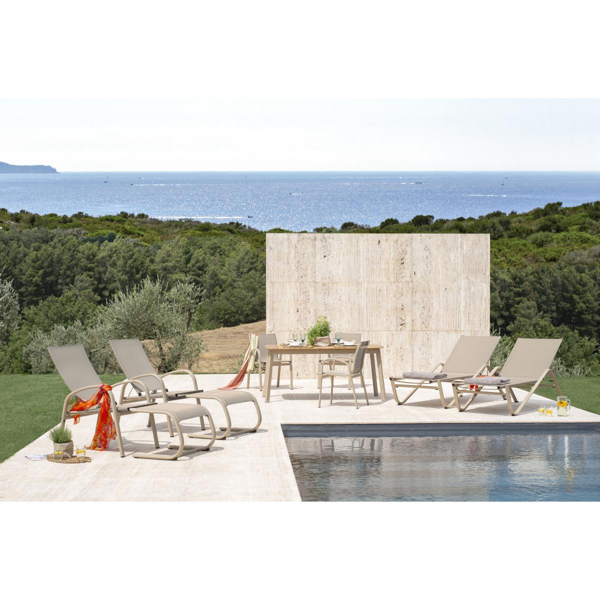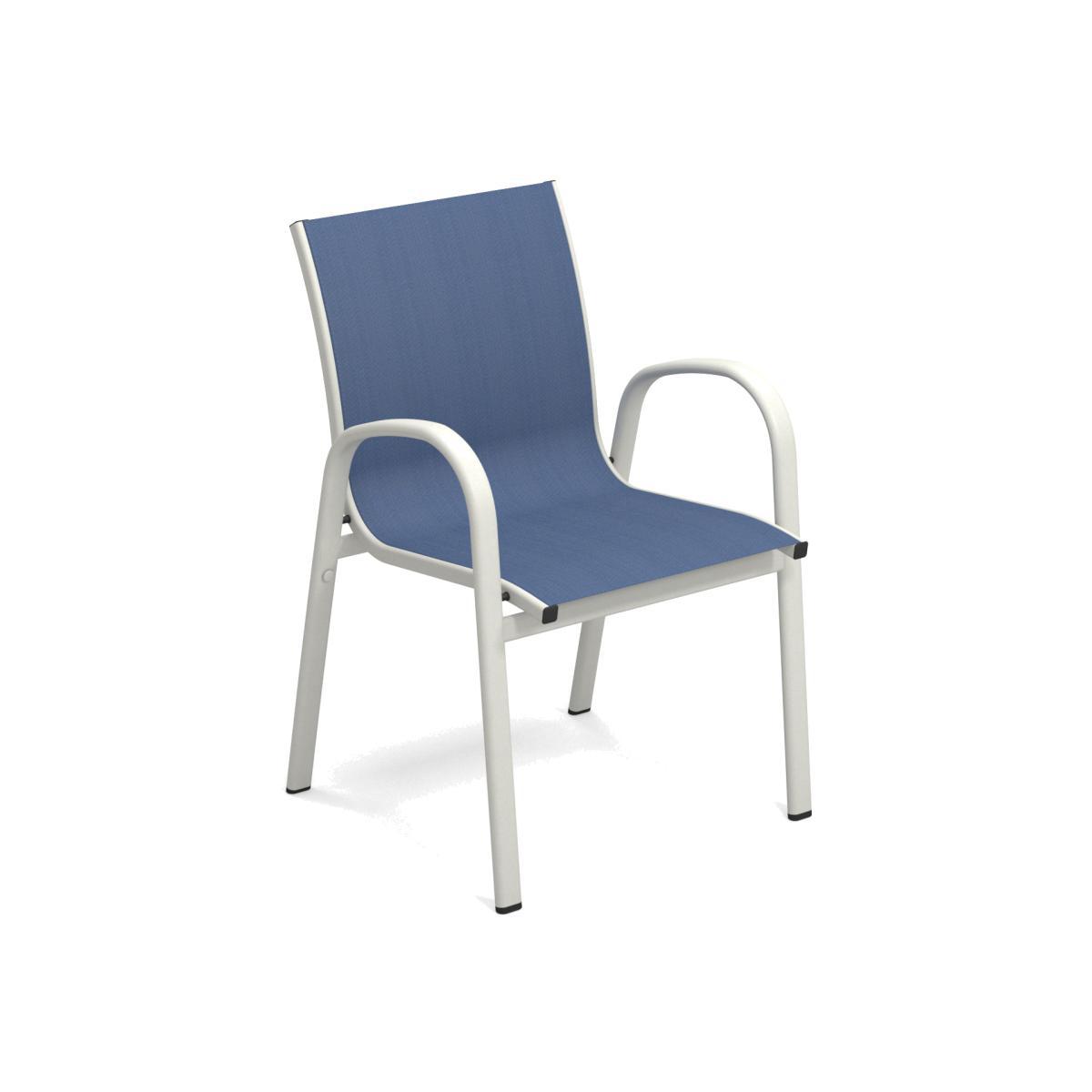 I love this stackable armchair for its sleek, modern design and versatility. Its clean lines and muted blue fabric make it an excellent addition to both contemporary and minimalist garden settings, offering a pop of colour without overwhelming the space. It works particularly well paired with natural materials like teak or rattan to soften its look, or alongside lighter-coloured outdoor furniture for a fresh aesthetic. Practical styling tips include adding cushions in coordinating shades or layering with outdoor throws for comfort and visual interest. Its stackability also makes it a smart choice for maintaining a clutter-free look when not in use, making it ideal for multi-purpose outdoor areas or patios that require flexible furniture solutions.