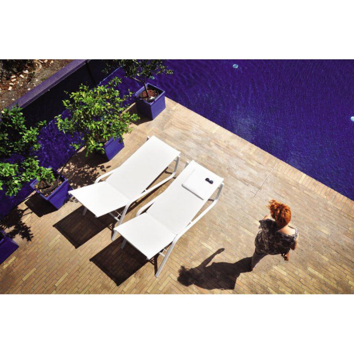 A sun lounger in simple and modern style!"Holly" takes us into lightness and well-being in pure state. The tilting backrest (4 positions) will adapt to your mood of the moment: a nap or reading time. Holly features an aluminium structure and texplast fabric cover. These robust and water-repellent materials that are fully weather-resistant. Holly is perfectly suitable for all seaside areas. This practical sun lounger has hidden wheels so that it can easily be moved when needed. Holly is stackable. You can equip Holly with a sunshade (sold separately).