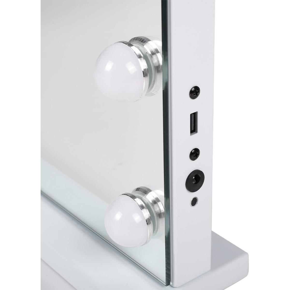 High quality material and rigorous and exquisite spray process rejects any stitching traces on the frame, to create a perfect frame and look more high-grade and beautiful. 15 LED bulbs with warm light,daylight and cold lightsettings and adjustable brightness, provide a clean and bright reflection, soft and not dazzling to protect your eyes, allow you to get the most natural application of makeup, even at night. Simply turn on or off the light and adjust the brightness by touching the sensor switch on the screen, It is easy and convenient for you to control the makeup mirror that meet your all need during your dressing and makeup time. Built-in handy USB port on the side for charging your phone while you get ready. It will be a great decor to your dressing room, add charming sense to your room.