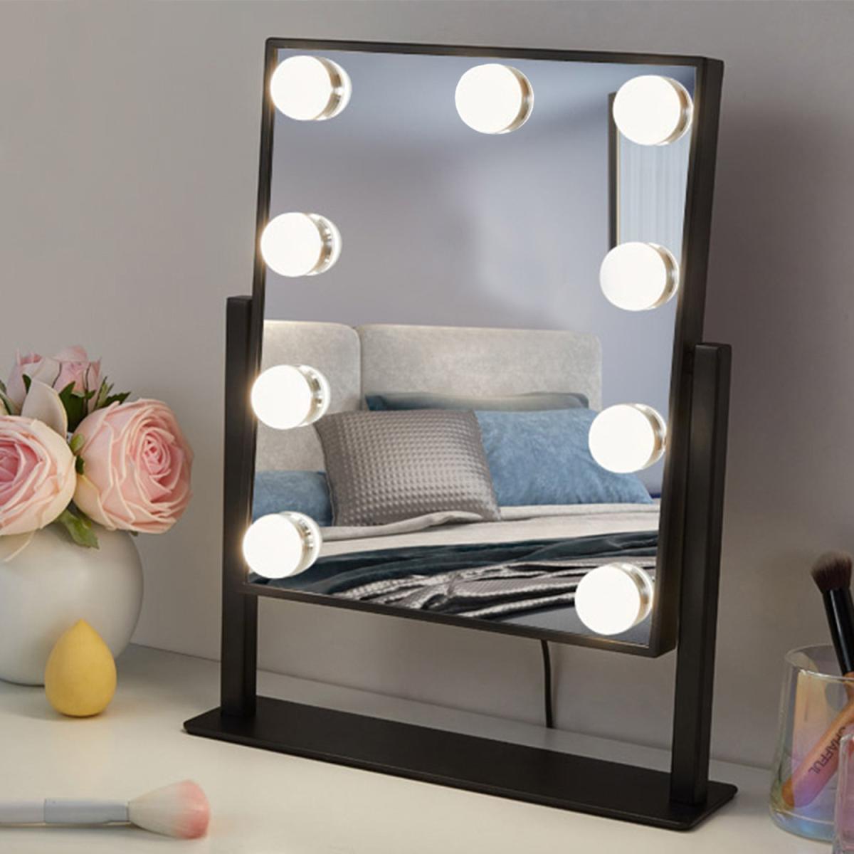 A must-have for your flawless makeup, check out the Livingandhome Hollywood-style makeup mirror. Featuring 9 luminous LED light bulbs surrounding the mirror frame, the mirror has a professional and trendy look that will make your makeup time agreeable. What's more, these LED light bulbs are adjustable, you can adjust them to the optimum colour to suit your delicate makeup. And even if the lights are kept on for a long time, they can still remain cool to the touch thanks to the latest LED technology. The mirror also has a base that makes angle adjusting more convenient.