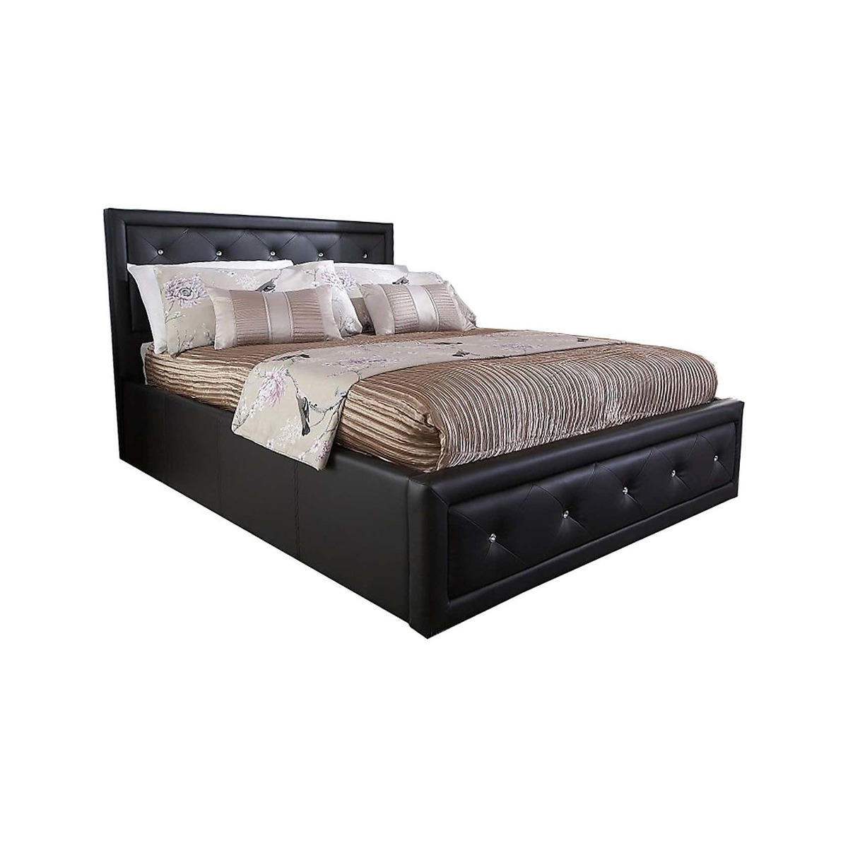 The Hollywood Faux Leather Ottoman Bed boasts a practical gas lift mechanism to reveal plenty of storage space beneath the mattress base. Featuring a tufted headboard and foot end with diamante detailing, this bed frame will suit most décors.