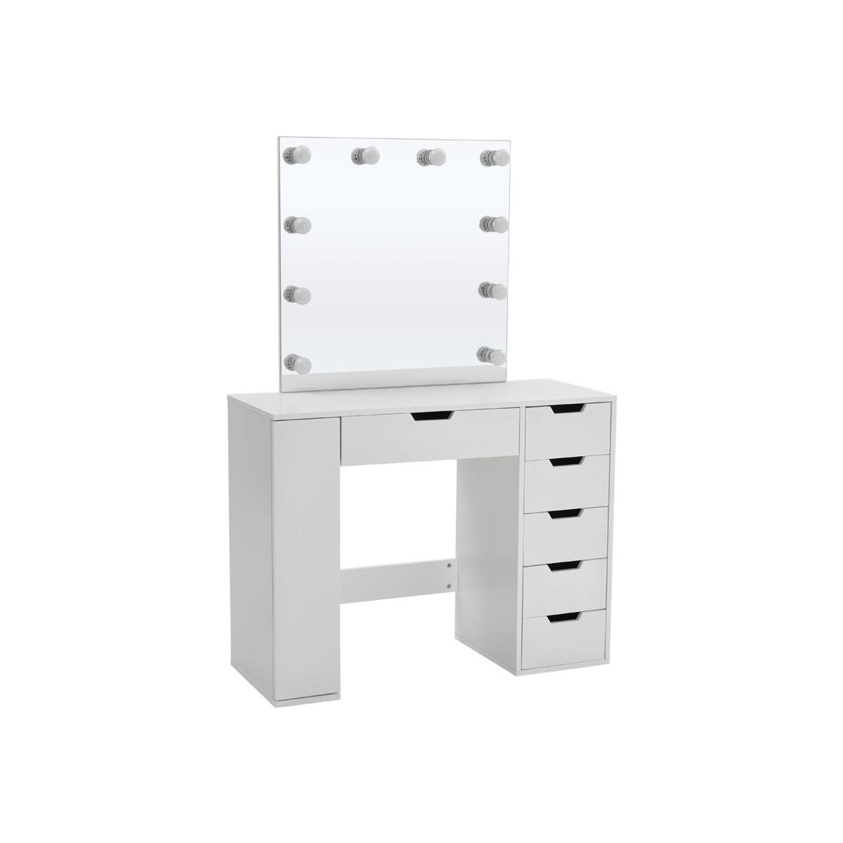 Inspired by classic Hollywood designs, this Livingandhome dressing table caters to both beauty enthusiasts and style aficionados. This dresser is crafted from high-quality MDF board and corrosion-resistant hardware, which boasts robust durability. Featuring a large mirror adorned with LED light bulbs and abundant storage choices including cabinets, large and small drawers, this table not only serves as a beauty station for you to wear makeup but also stands as a dedicated space for all your makeup and skincare essentials.