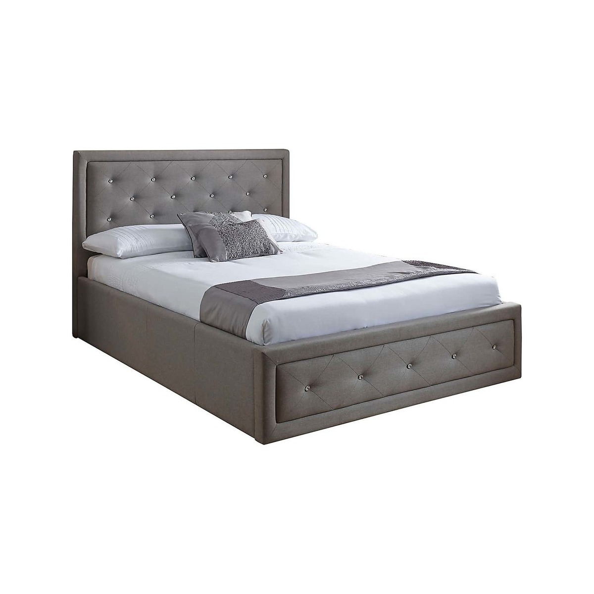 The Hollywood Fabric Ottoman Bed boasts a practical gas lift mechanism to reveal plenty of storage space beneath the mattress base. Featuring a tufted headboard and foot end with diamante detailing and an elegant stone grey finish, this bed frame will suit most décors. Please note, unfortunately we cannot deliver this item to the Channel Islands.