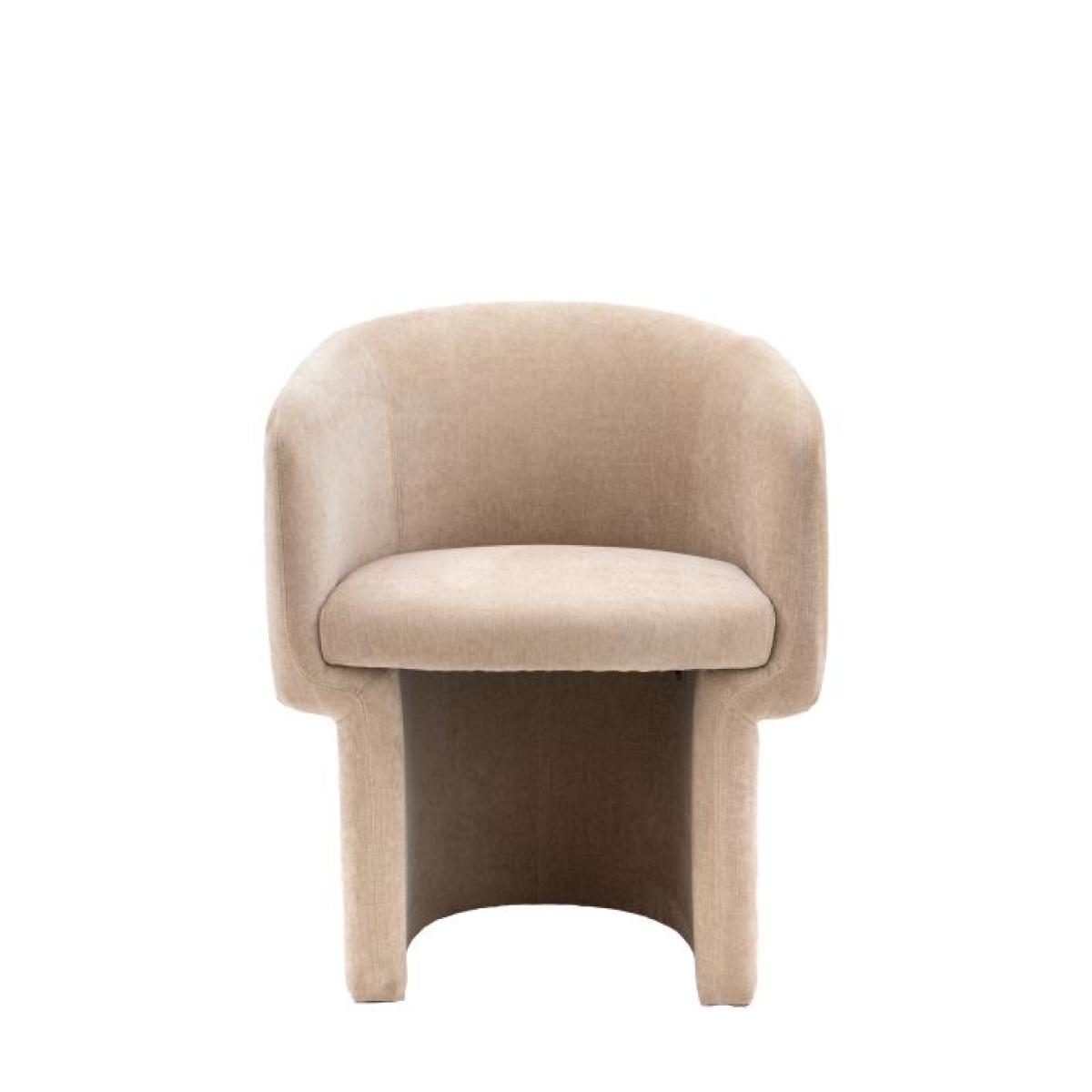 Vintage inspired this dining chair is full of retro cool. The curved tub chair back leads into the curved base, all upholstered in smooth cream fabric. The perfect fit for both modern and vitage inspired interiors this dining chair won't go unnoticed. Also available in green, red and grey colour options.