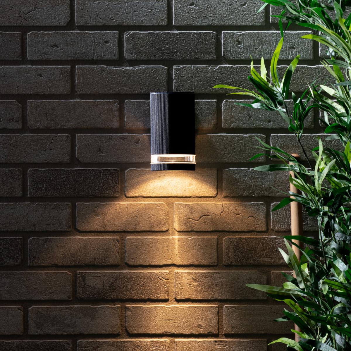 The Holme Outdoor Cylinder Wall Light in Black is a simple way of accenting your garden or patio. The black finish of this IP44 rated light adds a urban look perfect for any modern home. The sleek geometric shape of this outdoor wall lamp is a wonderful minimalist accent to your home or garden.