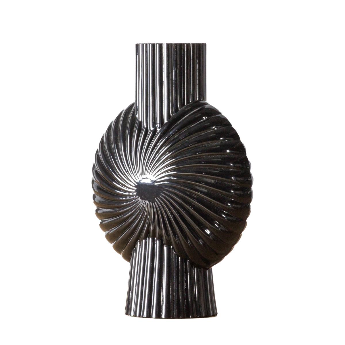 * Unusual, Abstract Vase* Made from Glass* Available in 2 Sizes & Finishes This stunning, breathtaking vase boasts an eye-catching design and is crafted with skill from black glass. It looks fantastic on its own or paired with the coordinating vase - which features a contrasted finish. Please Note: This vase is not 100% waterproof.
