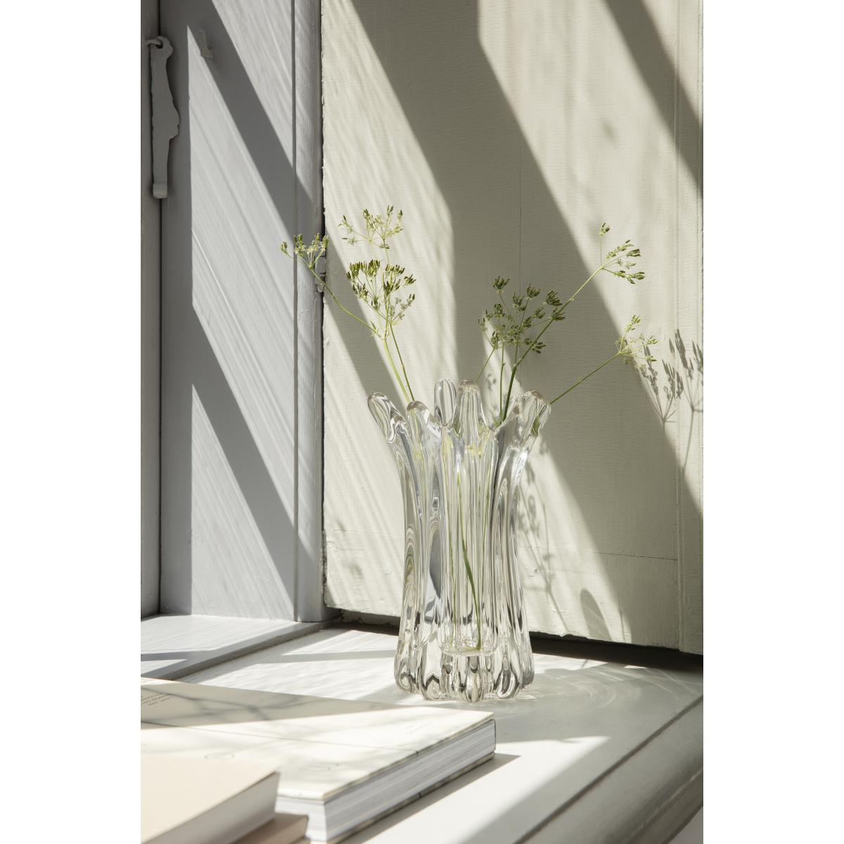 Evoking a block of ice, the Holo vase is made of hand-blown glass. The undulating, flowing, organic lines stretch upward, shaping the arrows formed during the fusion process. Fits a standard tea light. This is a hand-crafted piece: each item is unique. Variations may occur.