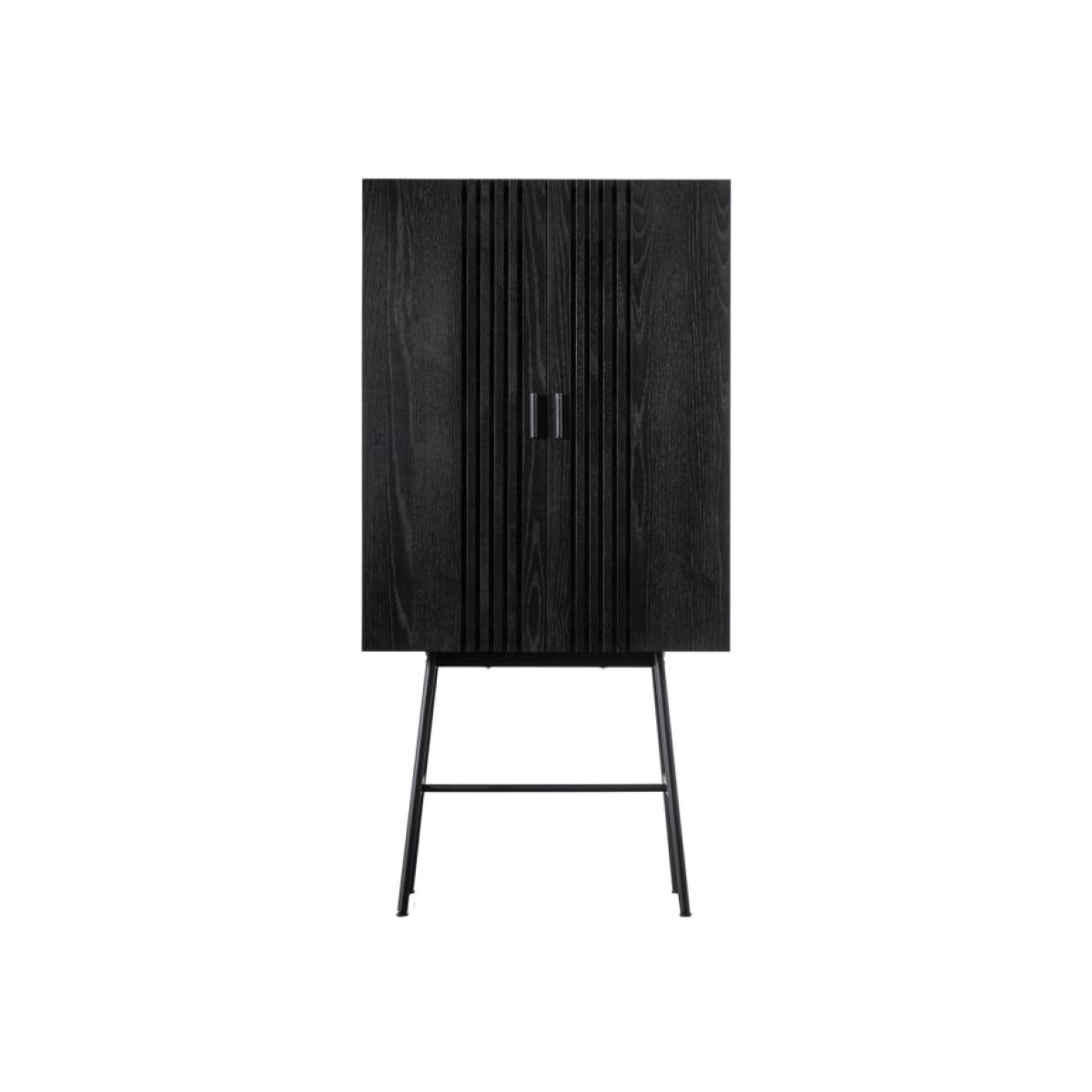 This stunning drinks cabinet offers a striking contemporary look, with the slatted design on the doors adding interest. Crafted using solid oak for the slats and oak veneers, the matt black finish beautifully shows the grain of the wood and pairs perfectly with the matt black metal legs. Matt black solid oak handles add the finishing touch. Internally, each cupboard has two adjustable shelves for added practicality. The cabinet is part of a collection which offers a selection of cabinets. The collection is part of our Packed-Flat Design Project, offering easy delivery to any room in any property, whilst reducing the packaging needed. Easy assembly is required, but all the tools needed are supplied.