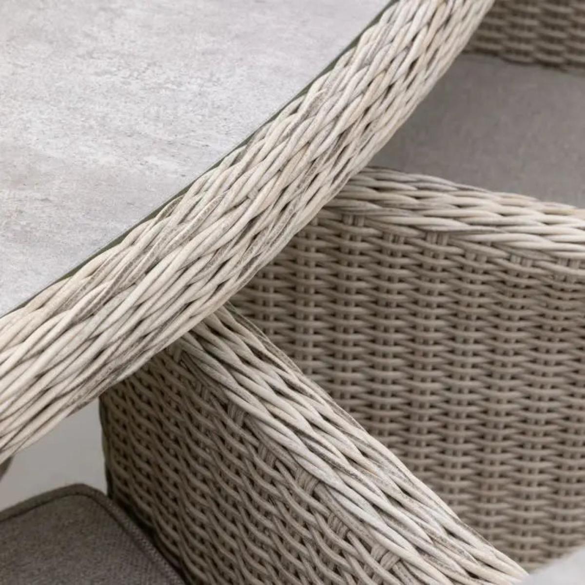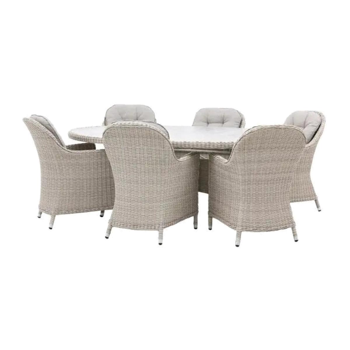 Crafted with a blend of rattan and plush, generously sized cushions, this set offers comfortable seating for you and any guests. The neutral color palette complements any outdoor decor, and the oval table provides ample space for entertaining. Perfect for alfresco dining, this set is a stylish addition to any patio or garden. Crafted with a blend of rattan and plush, generously sized cushions, this set offers comfortable seating for you and any guests. The neutral color palette complements any outdoor decor, and the oval table provides ample space for entertaining. Perfect for alfresco dining, this set is a stylish addition to any patio or garden.