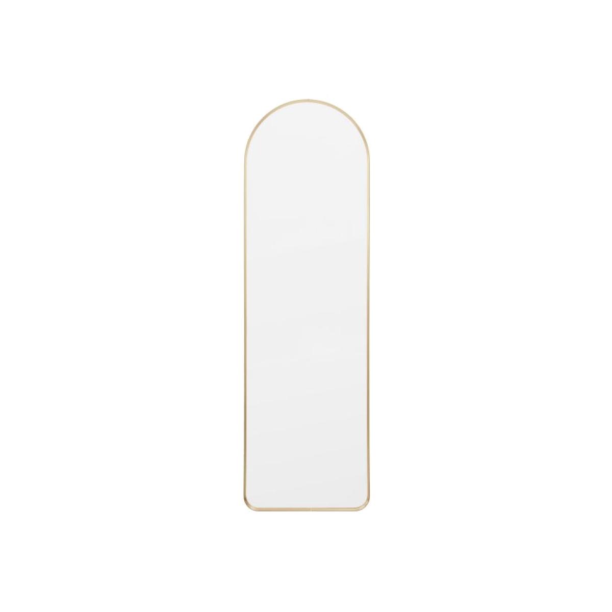I love this gold-edged mirror for its versatility and timeless appeal. It works particularly well in both modern and transitional interiors, adding a touch of sophistication without overpowering the space. The elongated shape with rounded top makes it a great option for narrow hallways or as a statement piece above a console table. For styling, consider placing it alongside warm-toned metals or natural materials like timber and stone for a cohesive look. Keep the surrounding decor minimal to let the mirror shine, or pair it with subtle lighting to enhance its luminous quality. It’s a practical choice that can elevate the overall aesthetic of an entryway, bedroom, or living area.