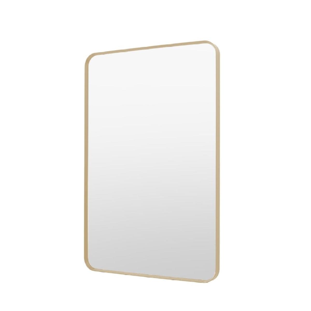 Holworth rectangular mirror, featuring a sleek gold-coloured metal frame with curved edges. Add a touch of elegance to your home with the Holworth mirror. Featuring a sleek gold metal frame with gently curved edges, this mirror exudes a refined and contemporary charm. Its clean lines and sophisticated finish make it a versatile addition to any room, offering both functionality and style. Perfect for living rooms, hallways or bedrooms, the Holworth mirror brings a sense of openness and light to your space. The gold frame enhances its modern aesthetic, effortlessly blending with a variety of interior styles for a polished and timeless look. Holworth rectangular mirror, featuring a sleek gold-coloured metal frame with curved edges. Add a touch of elegance to your home with the Holworth mirror. Featuring a sleek gold metal frame with gently curved edges, this mirror exudes a refined and contemporary charm. Its clean lines and sophisticated finish make it a versatile addition to any room, offering both functionality and style. Perfect for living rooms, hallways or bedrooms, the Holworth mirror brings a sense of openness and light to your space. The gold frame enhances its modern aesthetic, effortlessly blending with a variety of interior styles for a polished and timeless look.