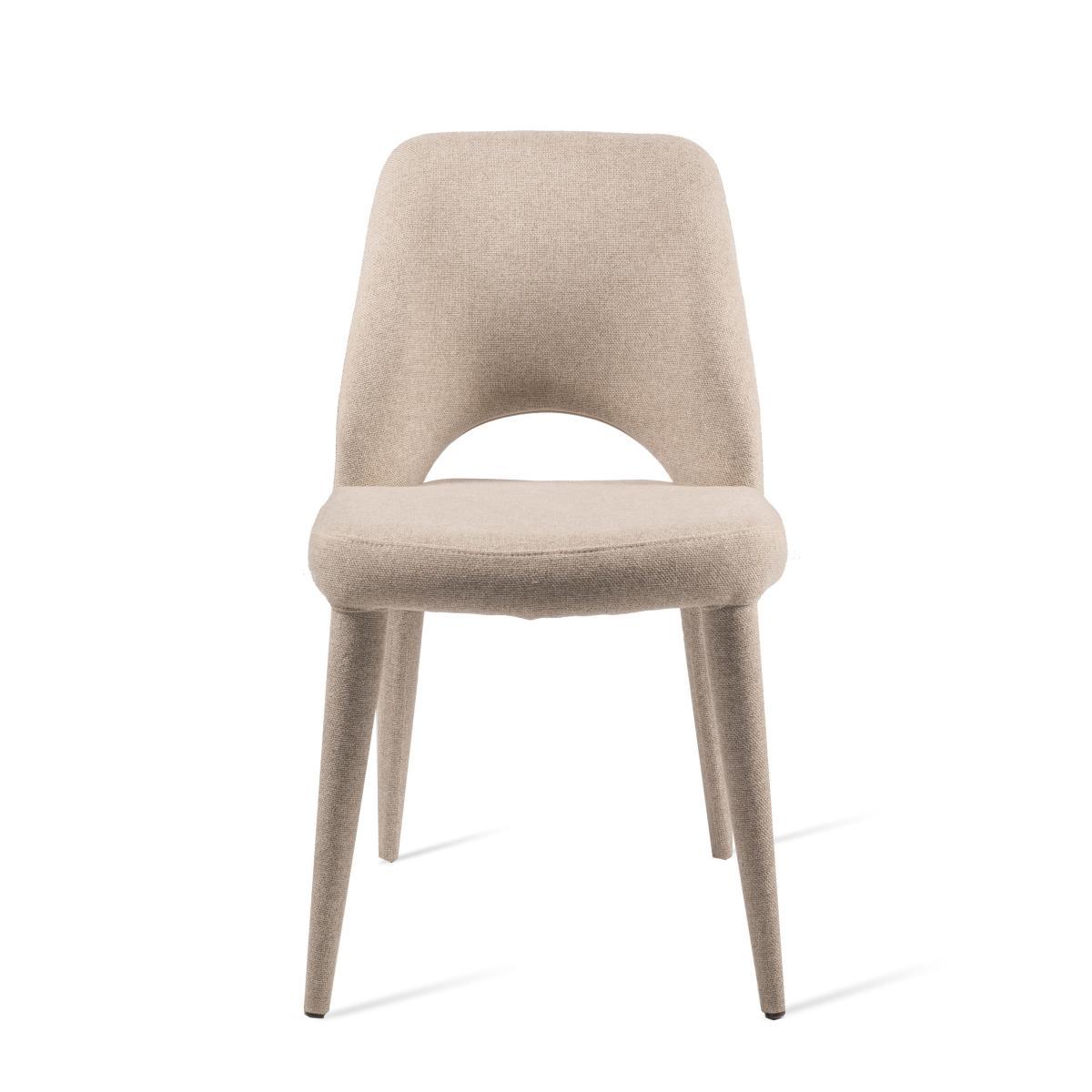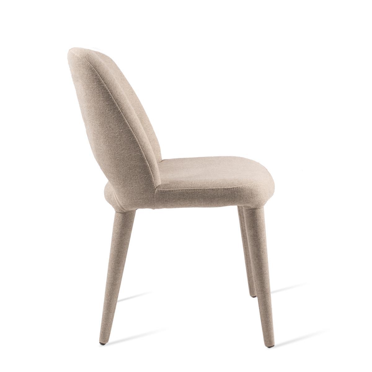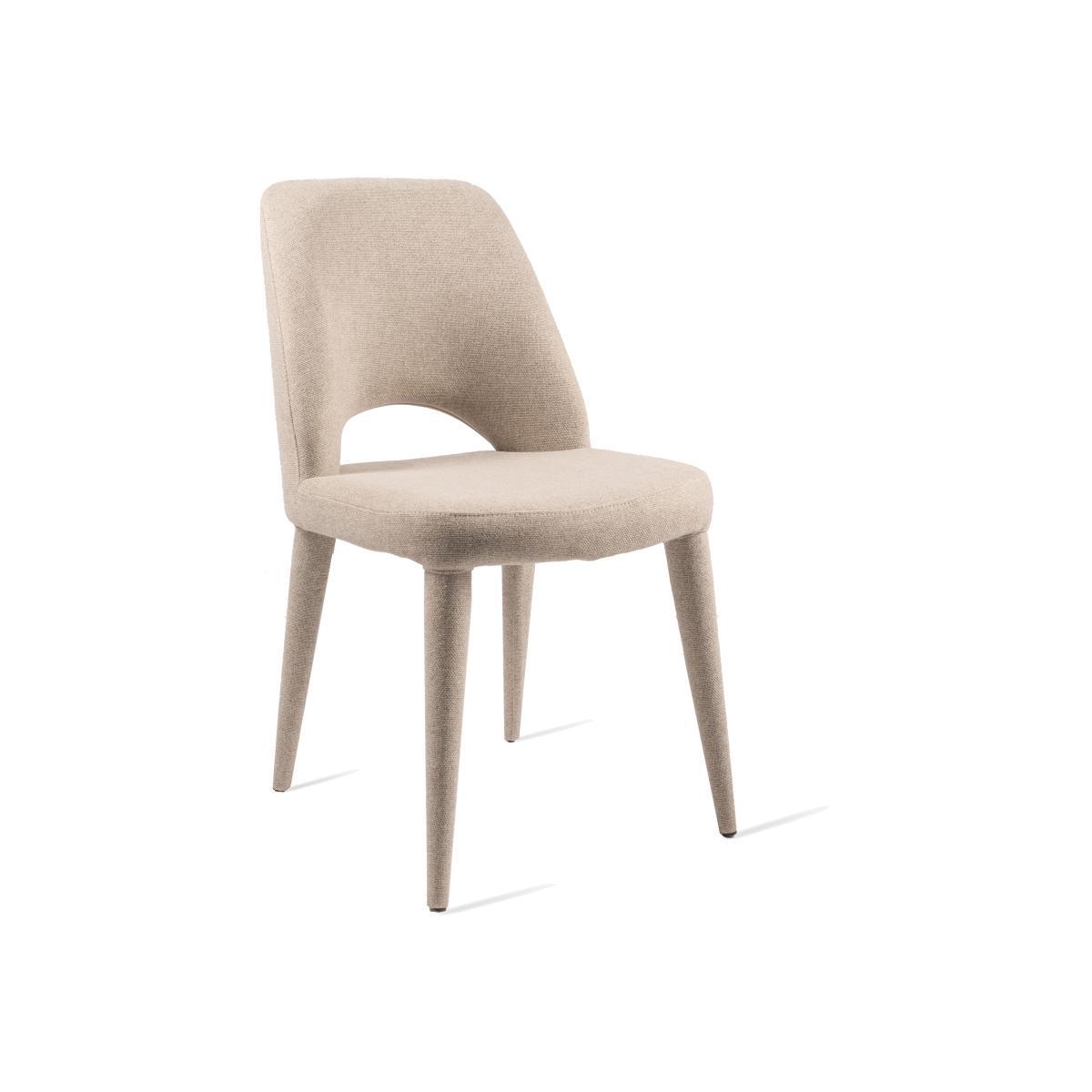 A chic vintage style for this upholstered chair totally covered with fabric. The Holy chair comes in a palette of intense, vibrant colours that bring a friendly note to our interiors. Perfectly matched to the seat, the tapered legs are also padded and covered with fabric. The opening at the bottom of the backrest makes it easy to move the chair. Very comfortable, this chair with its fifties look is perfect for creating a cosy corner in any room of the house: around the living room table, in a bedroom, an entrance.