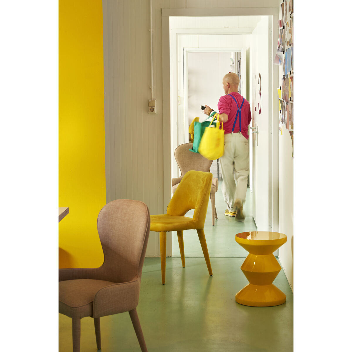 A chic vintage style for this padded chair covered with a luxurious velvet. Silky, velvety and warm, this fabric is the embodiment of a sophisticated, glamorous spirit. The intense, vibrant colour brings a certain conviviality into your home. Perfectly matched to the seat, the tapered legs are also padded and covered with velvet. The opening at the bottom of the backrest makes it easy to move the chair. This fifties-look chair is perfect for creating a cosy corner in every room in the house: around the living room table, in a bedroom, an entrance.