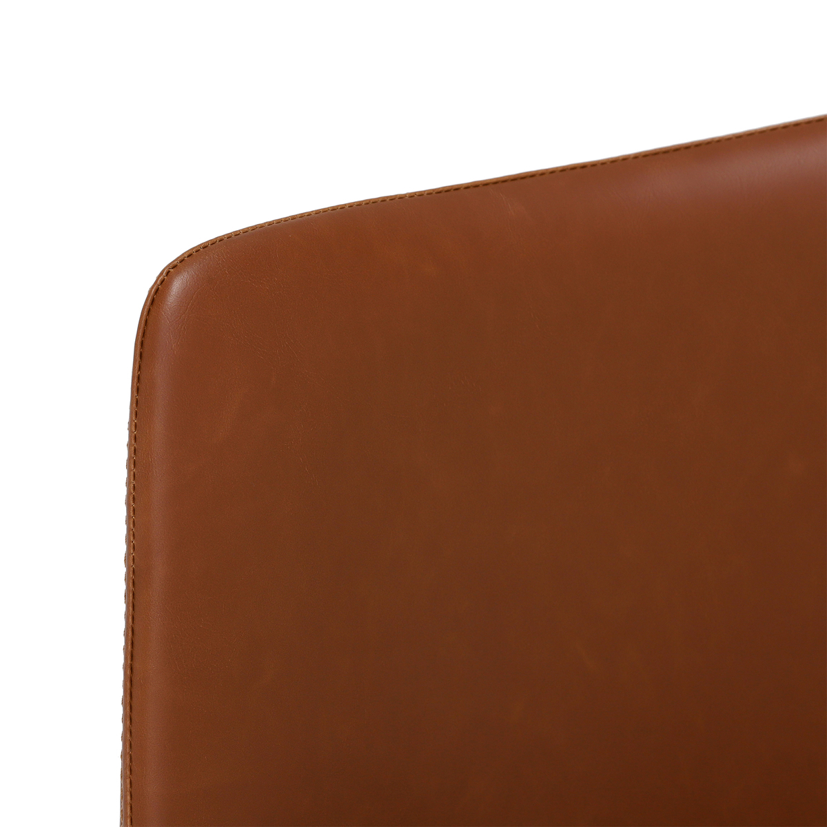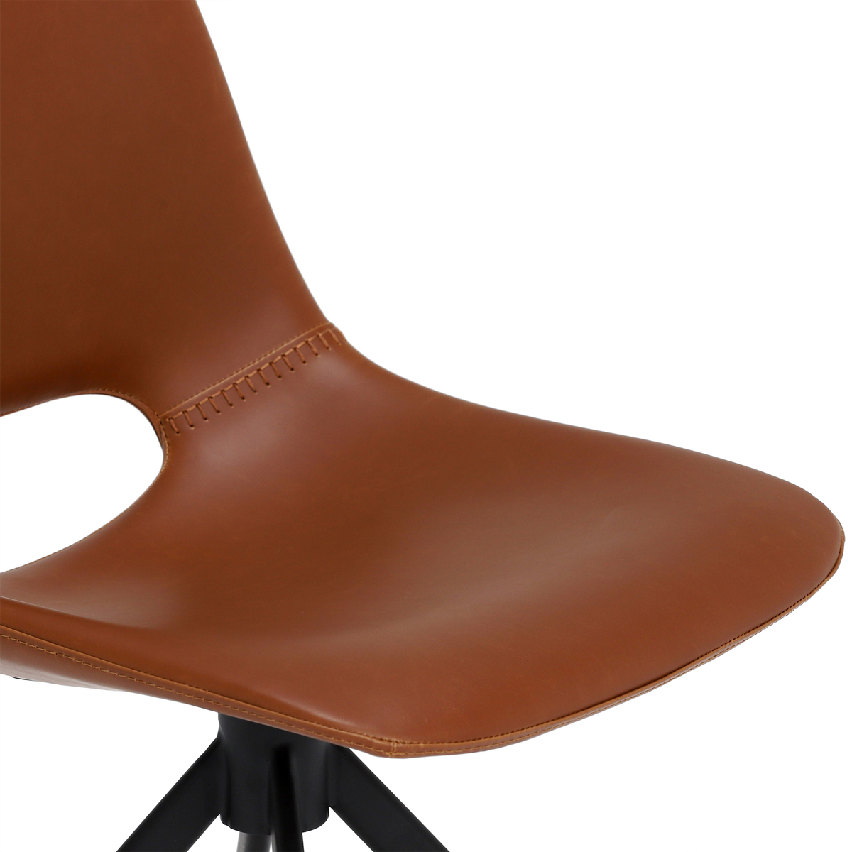 Working well with industrial interiors, reclaimed woods and modern décor, the Holzer dining chair is a comfortable and stylish addition to any table. Dressed in brown faux leather, the seat is moulded for ultimate support and benefits from a cushiony foam filling. Exposed stitching lends a raw and authentic look, whilst the chair’s black metal legs keep things sleek. Minimalist with an urban twist, Holzer is sure to entice everyone away from the TV.