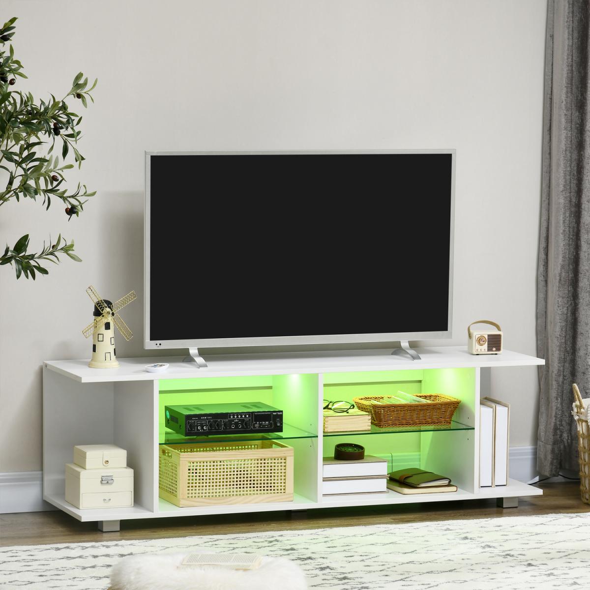 Your TV media unit, your way. This HOMCOM cabinet comes fitted with LED light strips 12 colourways with four different modes - flash, strobe, fade, smooth - to set the ambience up how you want. Made from durable particle board to be used everyday, this TV cabinet is suitable for everyday use, and comes with four inner shelves and two outer compartments to allow plenty of storage and display.