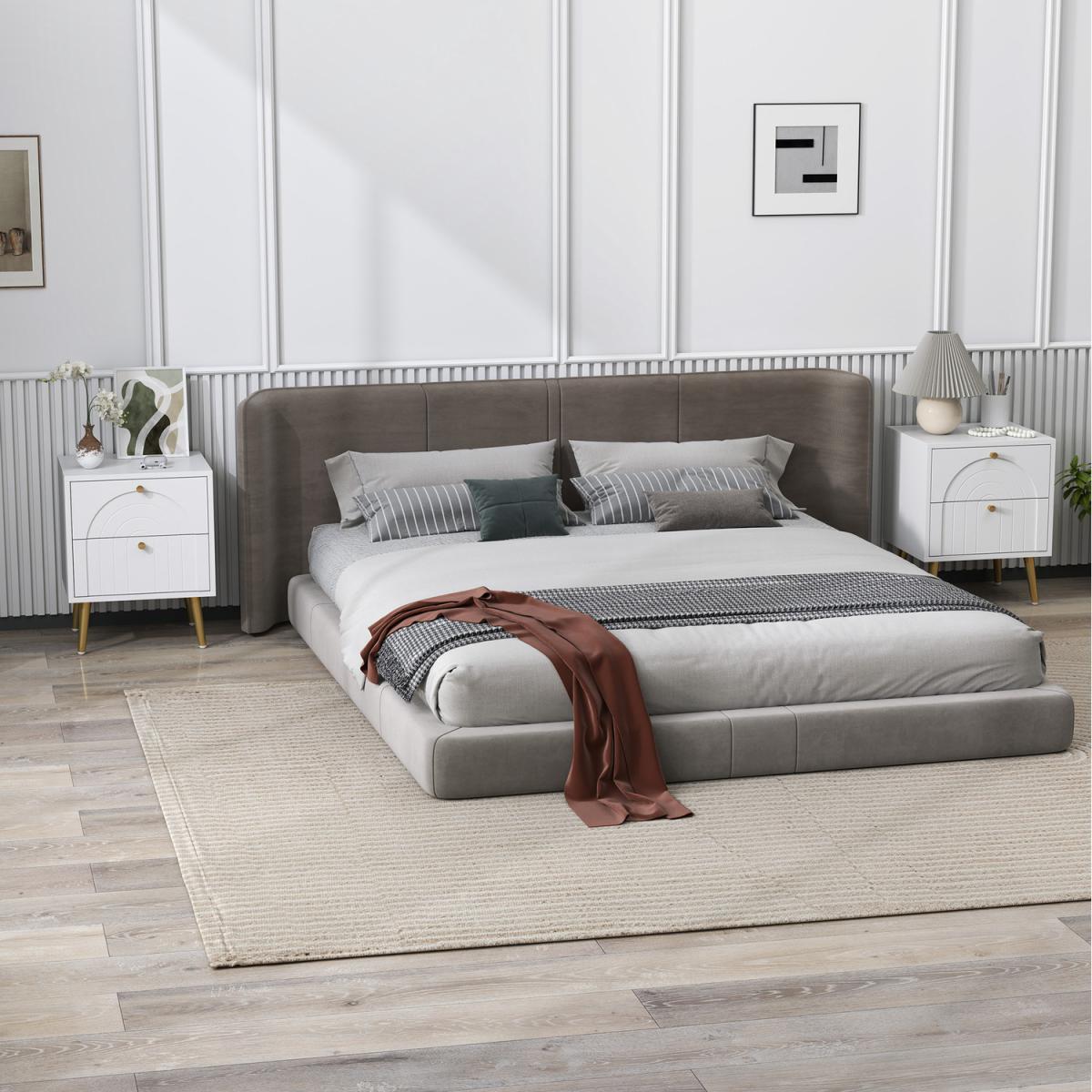 Transform your bedroom with the HOMCOM nightstand, a charming duo that doubles as stylish side tables. Each white bedside table features two spacious drawers adorned with an arched embossed pattern, complemented by gold-tone pulls and legs. The flat tabletops offer additional space for your night-time essentials, making these small bedside tables as functional as they are elegant.