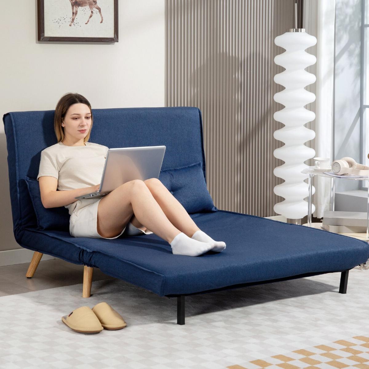HOMCOM 2 Seater Sofa Bed Click Clack Sofa Bed with Pillow - Dark Blue