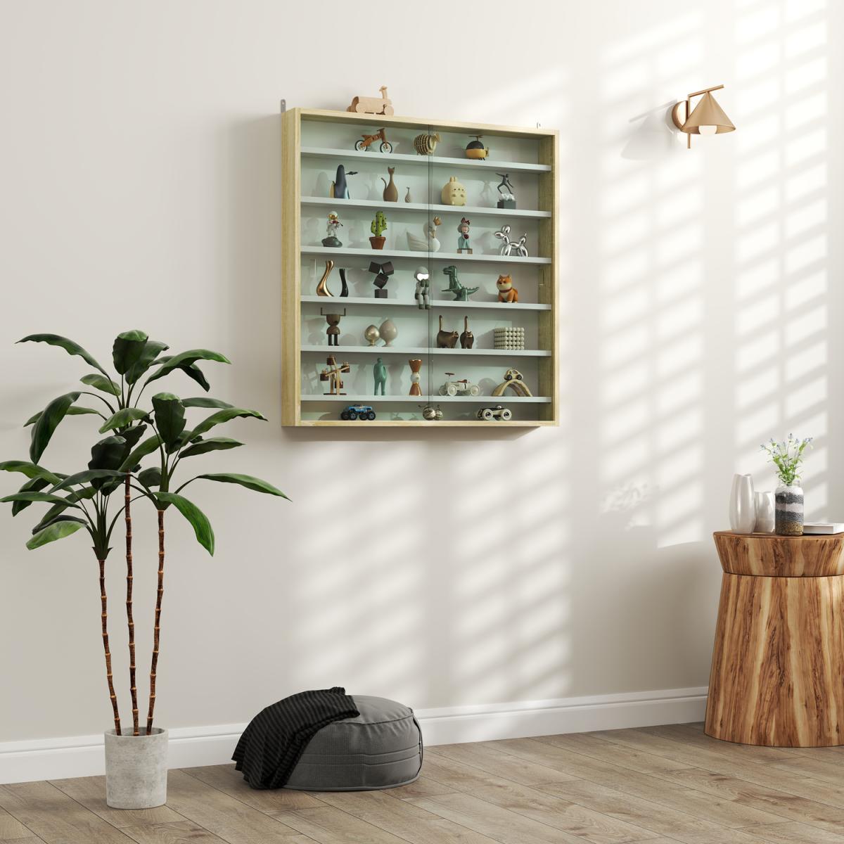 Display and organise your ornaments with this HOMCOM wall display cabinet. Its six adjustable shelves offer lots of space to adjust to suit what you need to hold. The structure is crafted from particle board, so it is tough and robust and the front is fitted with two moving glass doors, keeping everything protected and easy to access when wanted. Easy to put in place, this classic home furnishing will keep all your favourite pieces beautifully displayed.