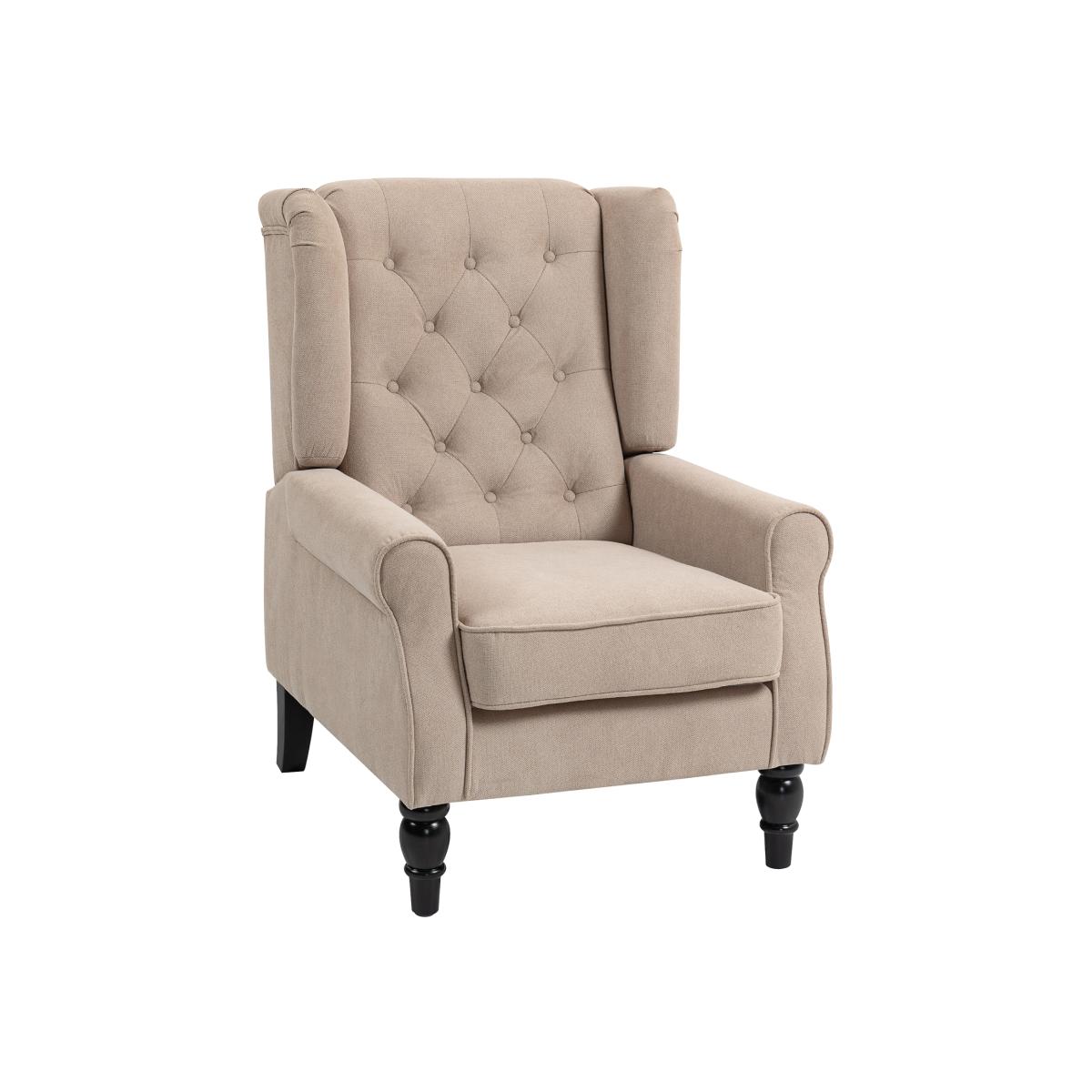 HOMCOM Accent Chair Wingback Armchair with Wood Frame - Beige