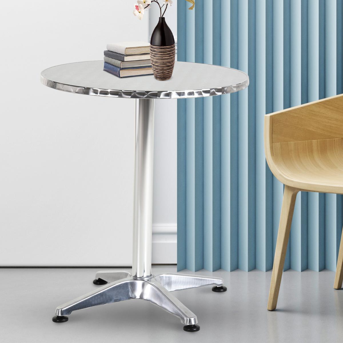 This HOMCOM Bar table is made from Aluminum with a silver finish and can be adjusted in height, use it as a low-level bistro table or extend the height for use as a bar table while standing or with a stool. It can be used at home or in restaurants and bars, a great table to have which will match any seating and surroundings.