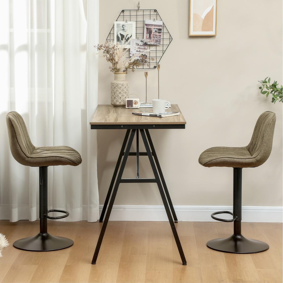 For every raised surface, these two HOMCOM bar stools are the ideal fit. Adjust the seat height between 60-80 cm, to match kitchen islands, countertops and other. The powder coated steel frame ensures a strong core. the 360 degree swivel motion moves with your body. The padded seats keep you comfortable all day long, finished with supportive high back and smooth linen-look upholstery.