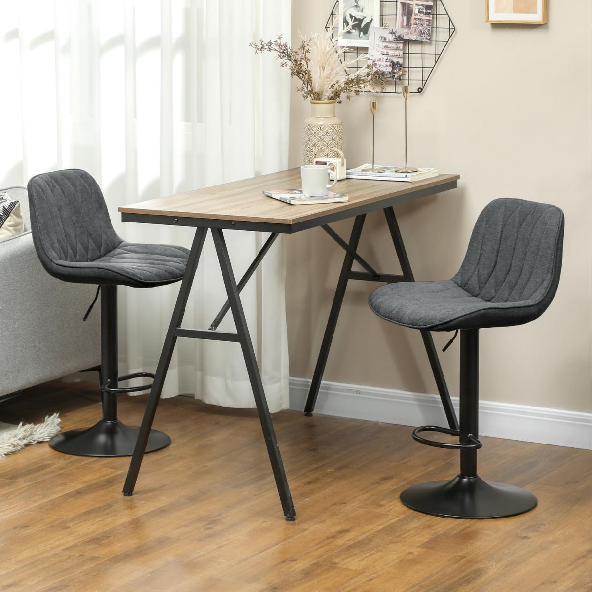 HOMCOM Bar Stools Set of 2 with Adjustable Height - Charcoal Grey