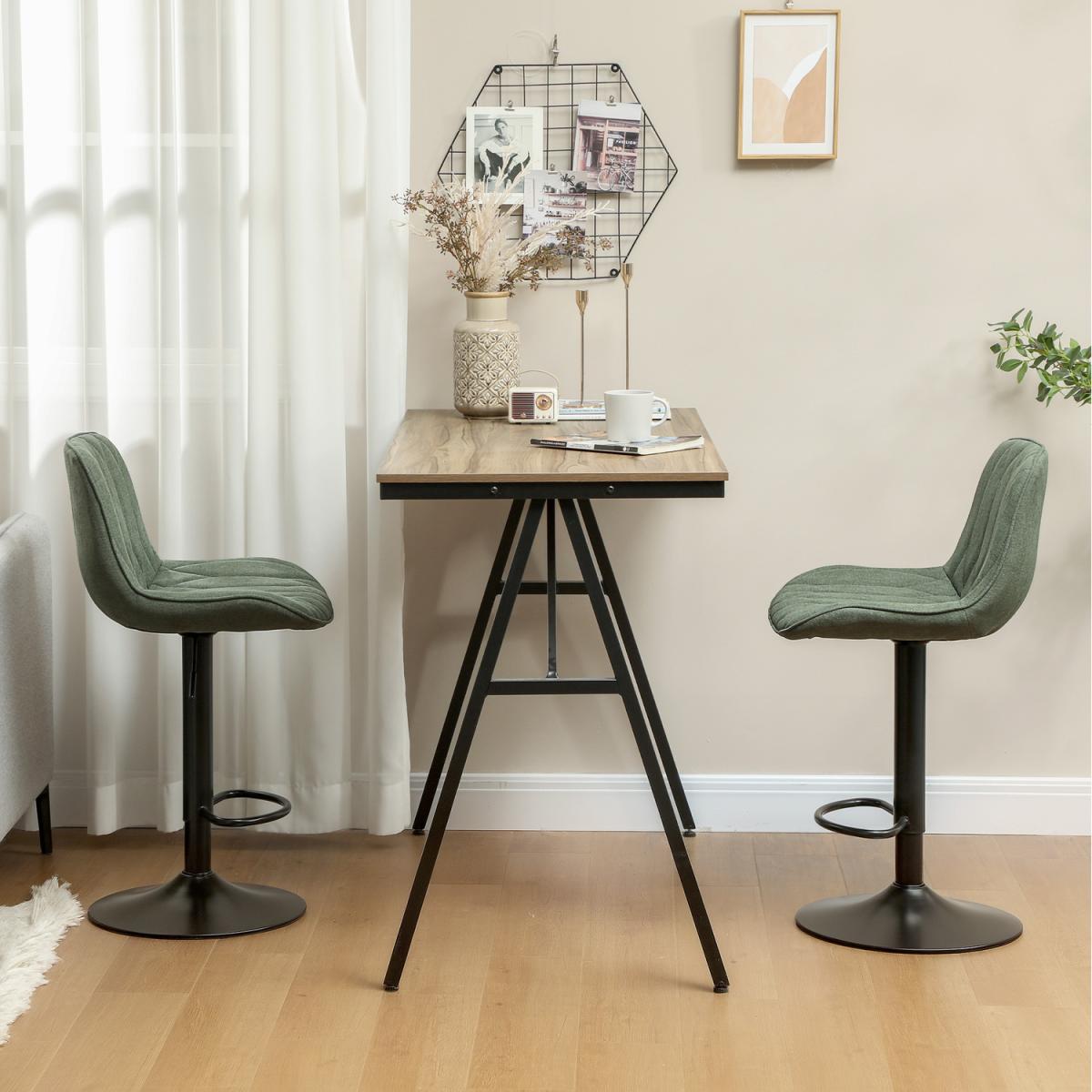 For every raised surface, these two HOMCOM bar stools are the ideal fit. Adjust the seat height between 60-80 cm, to match kitchen islands, countertops and other. The powder coated steel frame ensures a strong core. the 360 degree swivel motion moves with your body. The padded seats keep you comfortable all day long, finished with supportive high back and smooth linen-look upholstery.