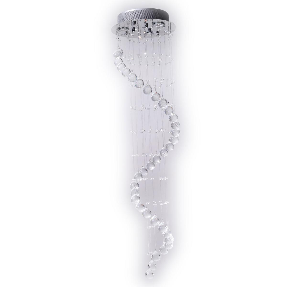I love this crystal chandelier for its striking spiral design, which adds a touch of modern glamour to a variety of interiors. It works particularly well in contemporary or eclectic spaces, where it can serve as a statement piece, but it also complements more traditional or luxurious decor thanks to the crystal elements. When styling, consider pairing it with minimalistic furniture to let the chandelier’s sparkle shine, and keep the surrounding finishes neutral to avoid competing with its intricate design. For practical tips, ensure the ceiling height is suitable for such a dramatic feature, and position it above dining tables or in entryways for maximum visual impact.