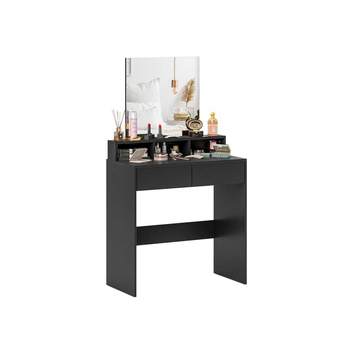 The black dressing table with mirror and LED lights is a sleek and functional addition that works well in contemporary interiors, especially those with monochrome or minimalist schemes. I love how the LED lighting adds a touch of Scandinavian influence, providing practical illumination for makeup and grooming without extra clutter. It’s versatile enough to sit beautifully in bedrooms or dressing areas with modern or industrial decor. To style it effectively, keep the surface clear and add a few organised trays or small storage boxes for your everyday essentials. Pairing it with a matching or contrasting stool and incorporating some textured or metallic accessories nearby can elevate the overall look, making the space both practical and stylish.