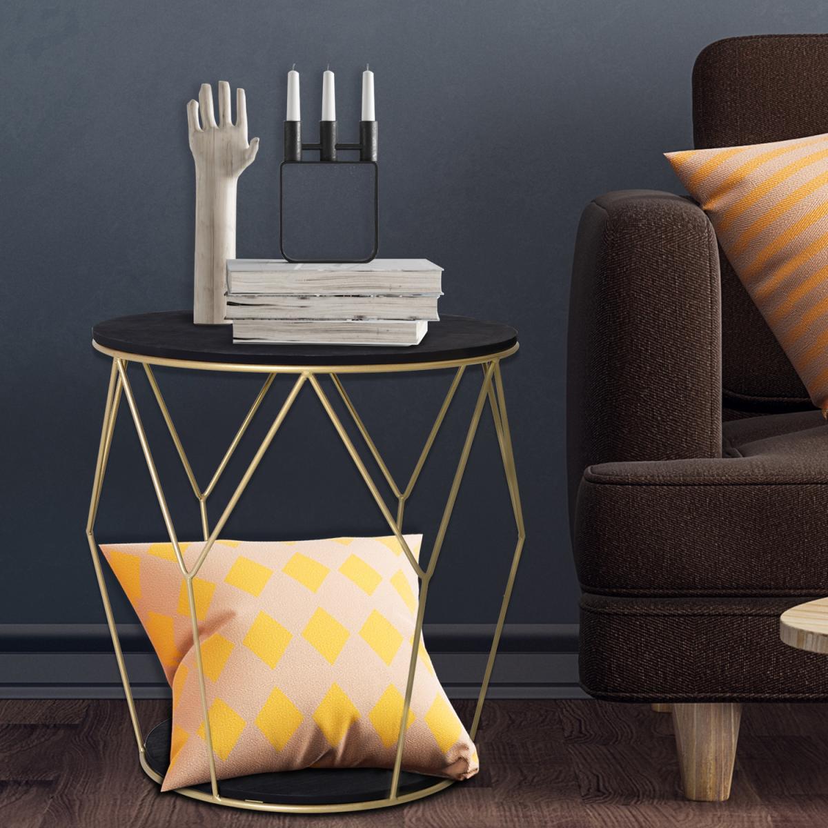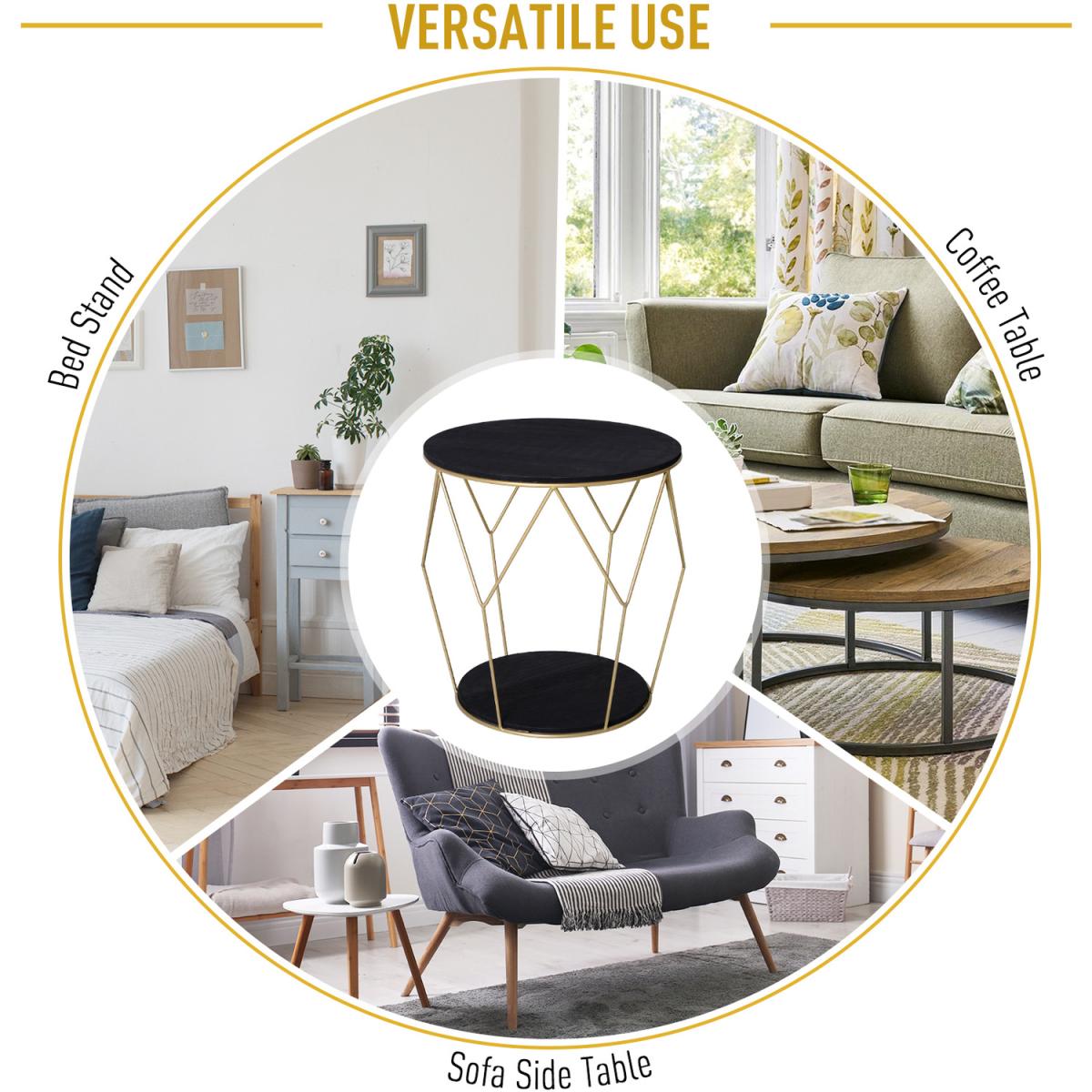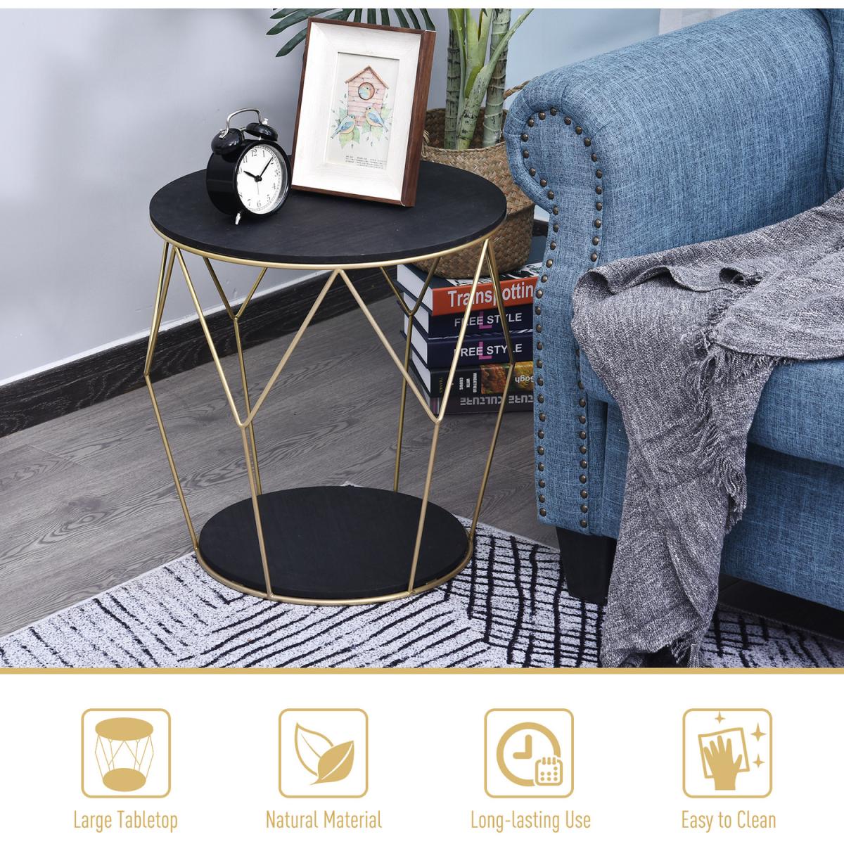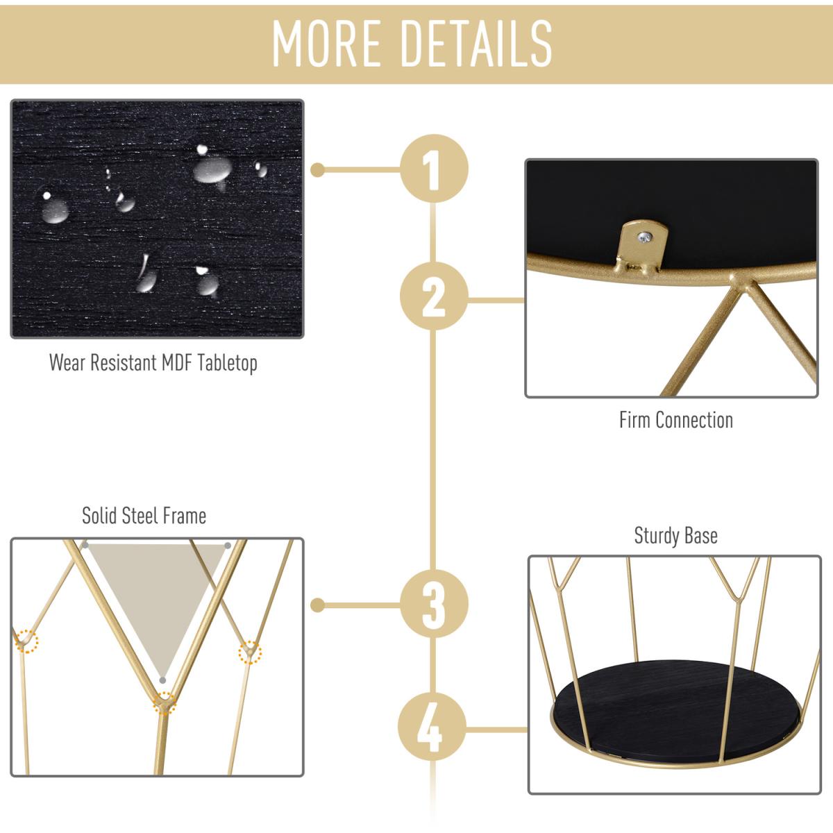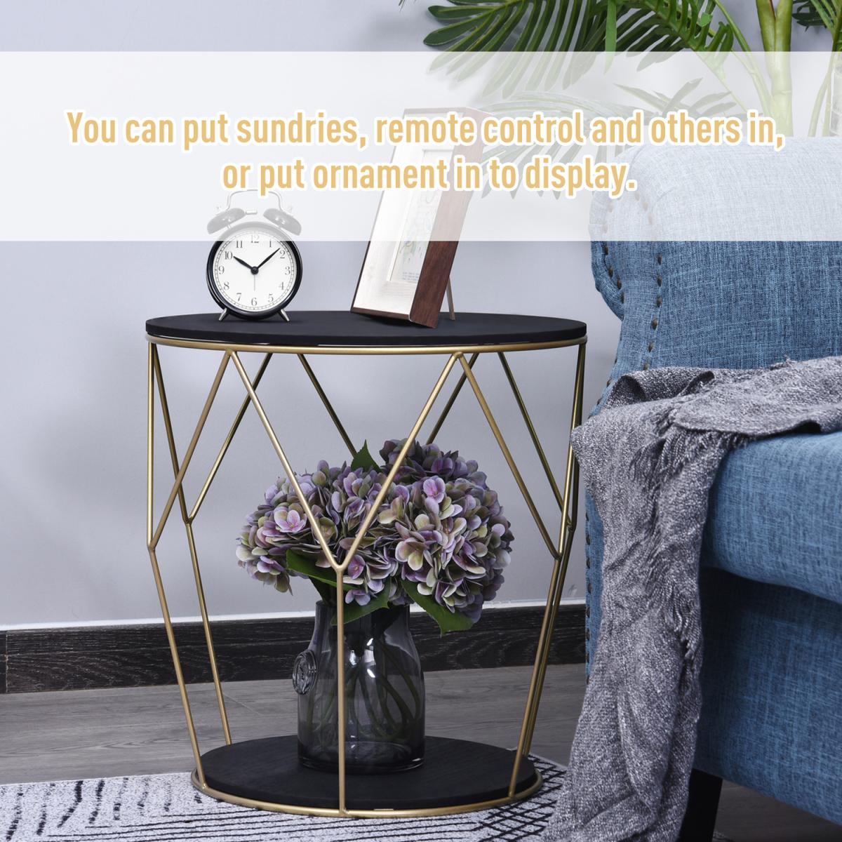 Bring home the perfect piece to make your living room or bedroom stand out, with this elegantly bold side table from HOMCOM. Made into a distinctive drum shape design, it is formed of two parts: the circle panels on both ends and the connecting frame in the middle. Using metal in a muted gold-tone, the middle frame is crafted into a zig-zag design, a unique look that provides stability and strength to the table, with a black circular base that keeps the unit balanced and stable on the floor. Also made from MDF, the tabletop provides plenty of room for keeping all you need close to you - making it only look beautiful, but functional too.