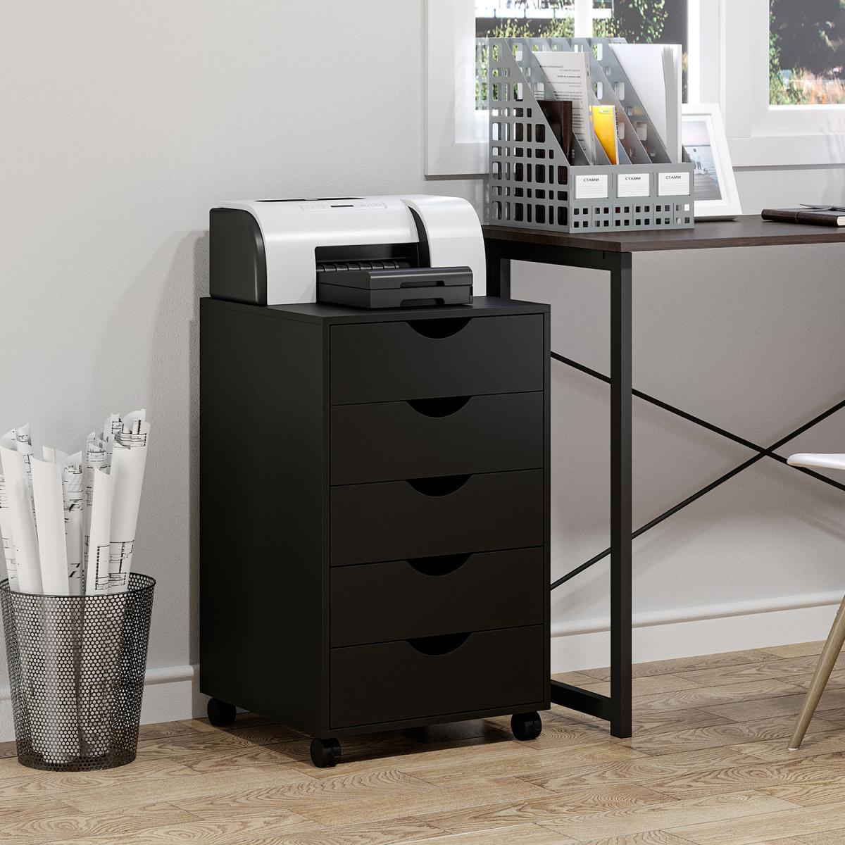HOMCOM Mobile Vertical File Cabinet with 5 Drawers for Home Office - Black