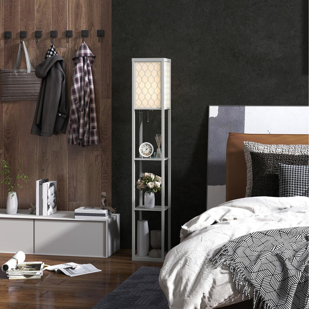 HOMCOM Modern 4 Tier Floor Lamp with Shelves - Light Grey