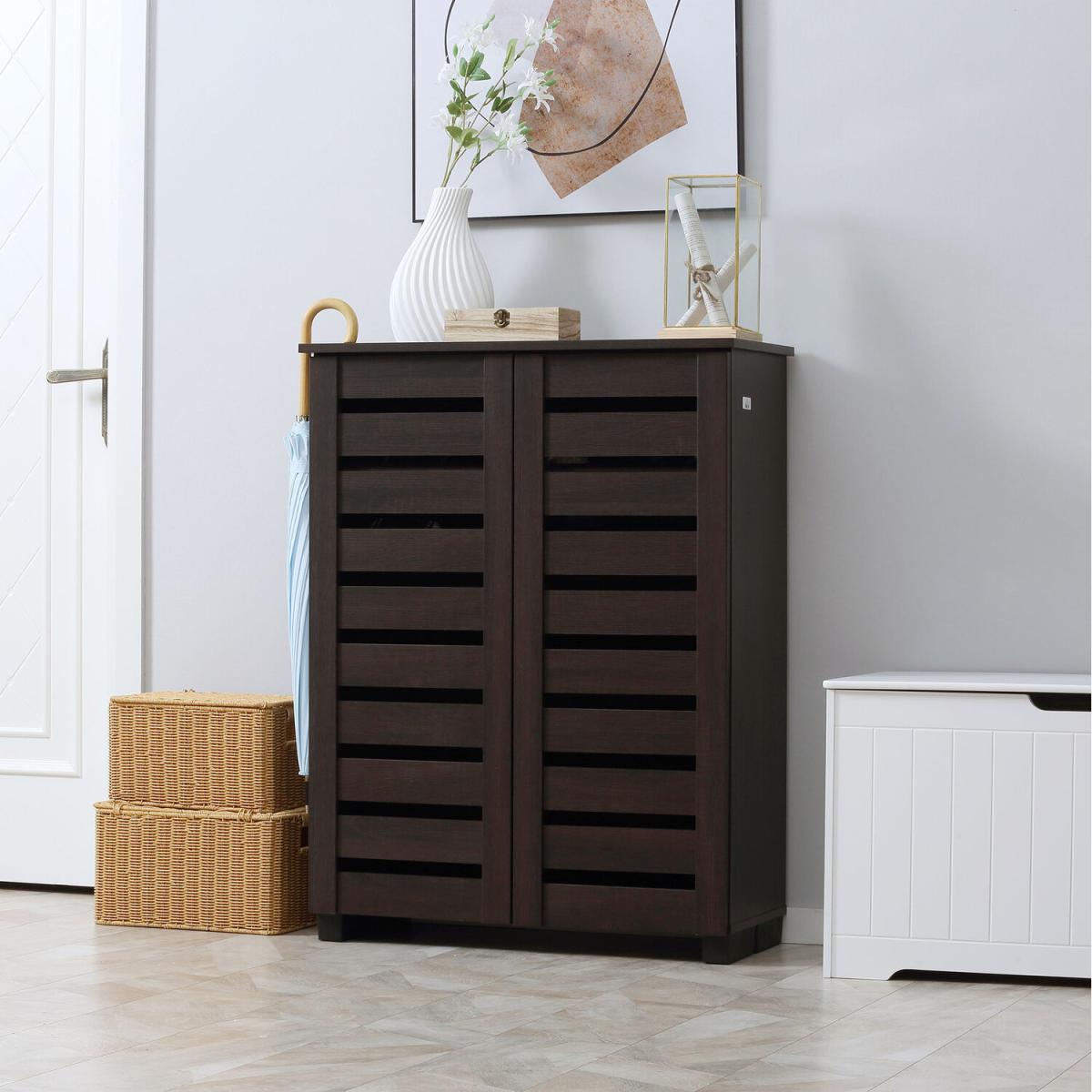 HOMCOM Shoe Storage Cabinet with Slatted Doors for 15 Pairs - Dark Brown