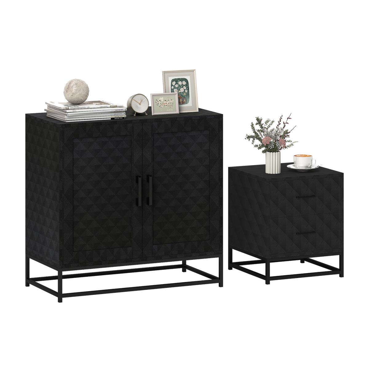 HOMCOM Sideboard and Bedside Tables Set with Doors Drawers - Black