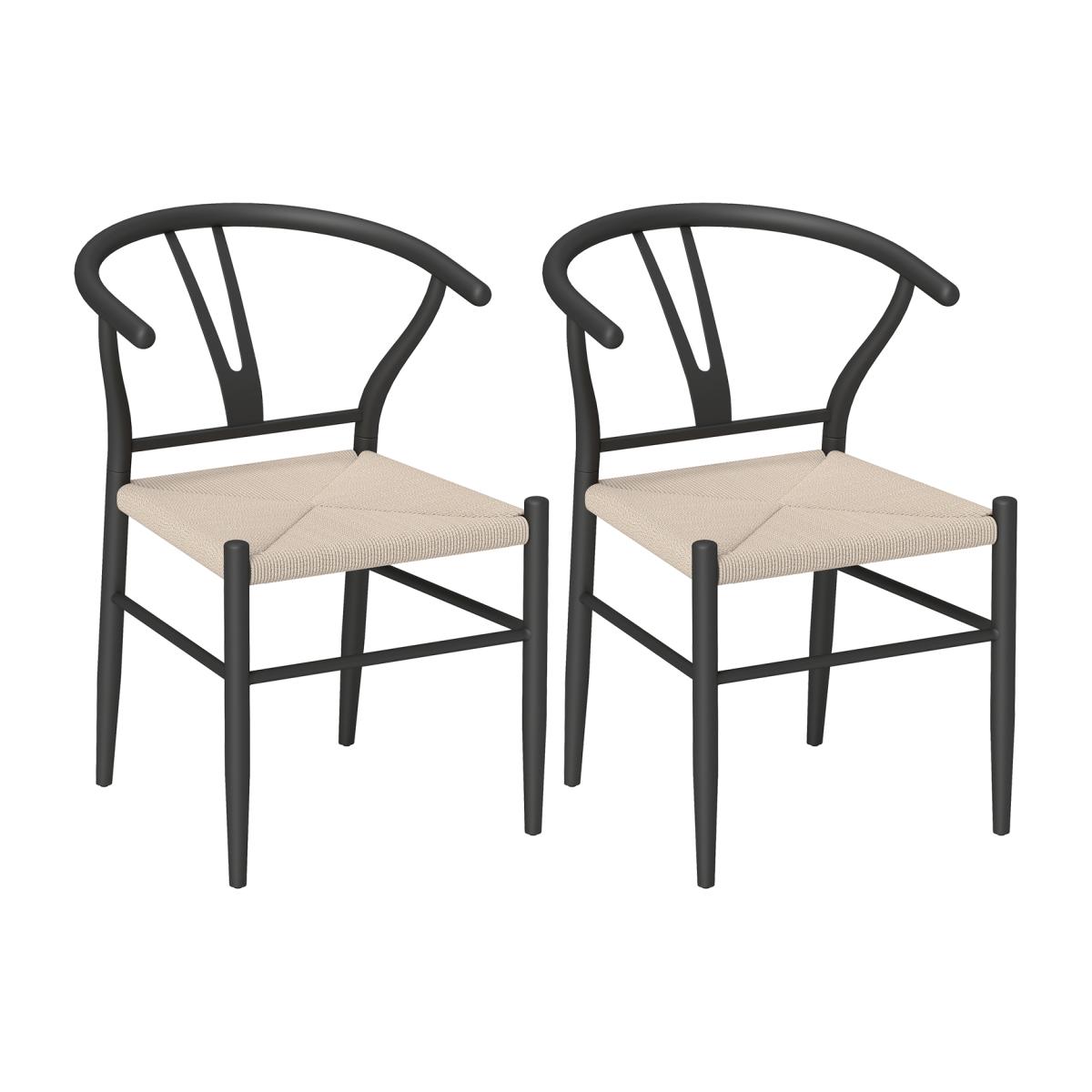 HOMCOM Weave Dining Chairs Set of 2 with Y-Shaped Backrest Seat - black