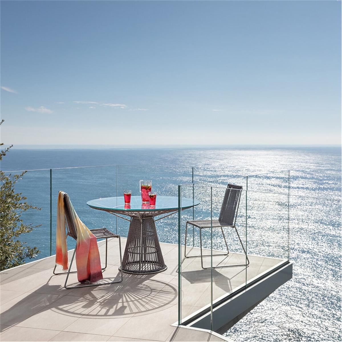 Bring fashion-forward design into your space with this Cordula chair from Missoni Home Collection. Crafted from curved stainless steel rods, it is covered with a handwoven rope with a micro-chevron design. Suitable for using both inside and out, pair this striking chair with others in the range for a coordinated look.